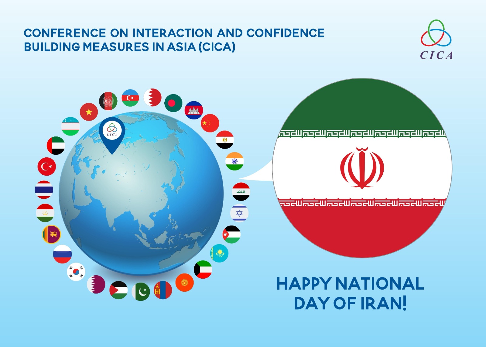 The Secretariat of the Conference on Interaction and Confidence Building Measures in Asia conveys its warm congratulations to the Islamic Republic of Iran on the occasion of its National Day.