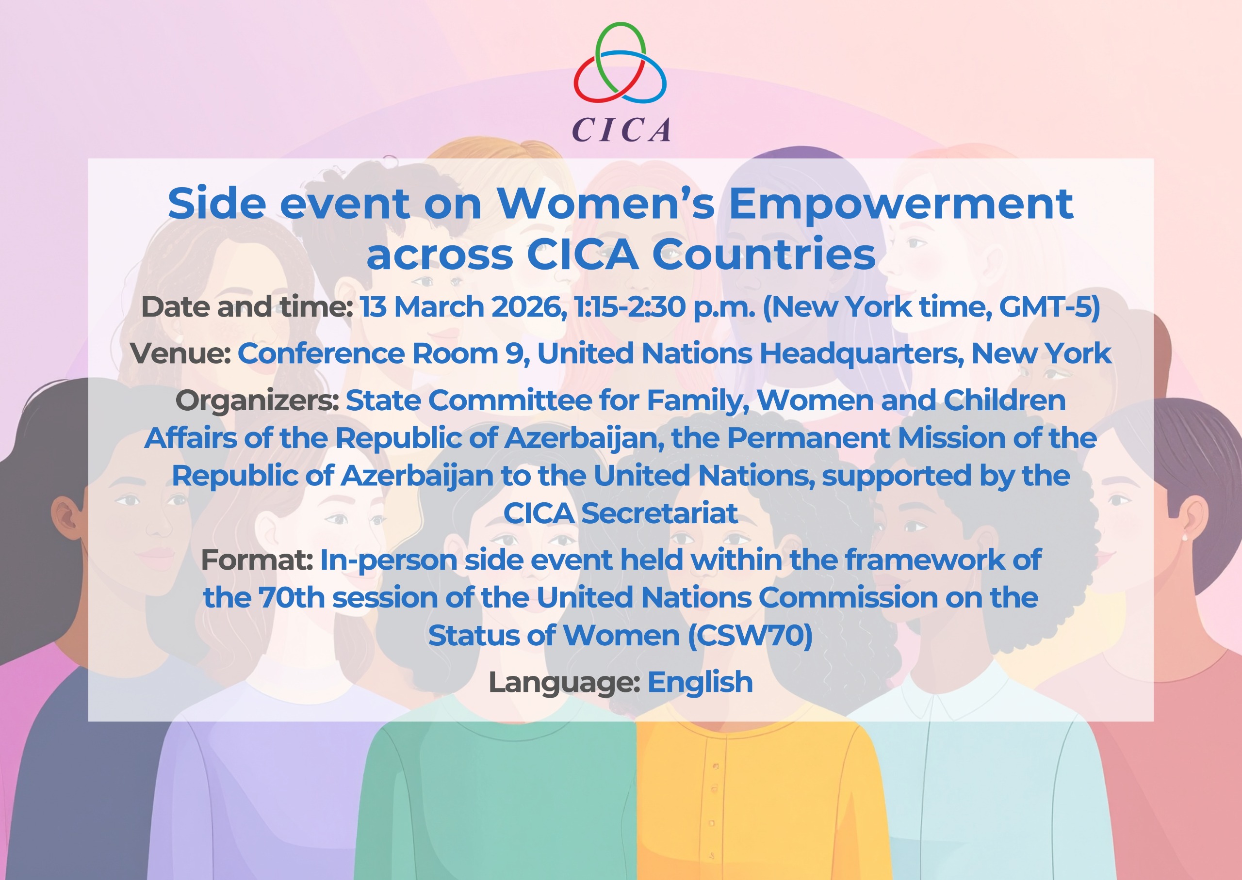 Organizers: State Committee for Family, Women and Children Affairs of the Republic of Azerbaijan, the Permanent Mission of the Republic of Azerbaijan to the United Nations, supported by the CICA Secretariat