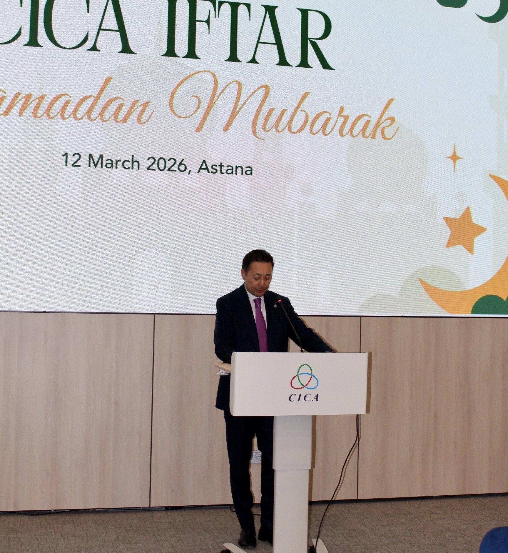 Astana, 12 March 2026 – The Secretariat of the Conference on Interaction and Confidence Building Measures in Asia (CICA) hosted a traditional Iftar dinner on the occasion of the holy month of Ramadan at the CICA Headquarters in Astana. The event brought together heads of diplomatic missions of CICA Member and Observer States, leadership of the Ministry of Foreign Affairs of the Republic of Kazakhstan, as well as heads of international organizations accredited in Kazakhstan.