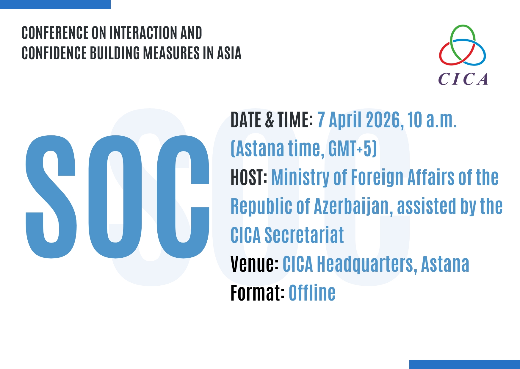 Host: Ministry of Foreign Affairs of the Republic of Azerbaijan, assisted by the CICA Secretariat