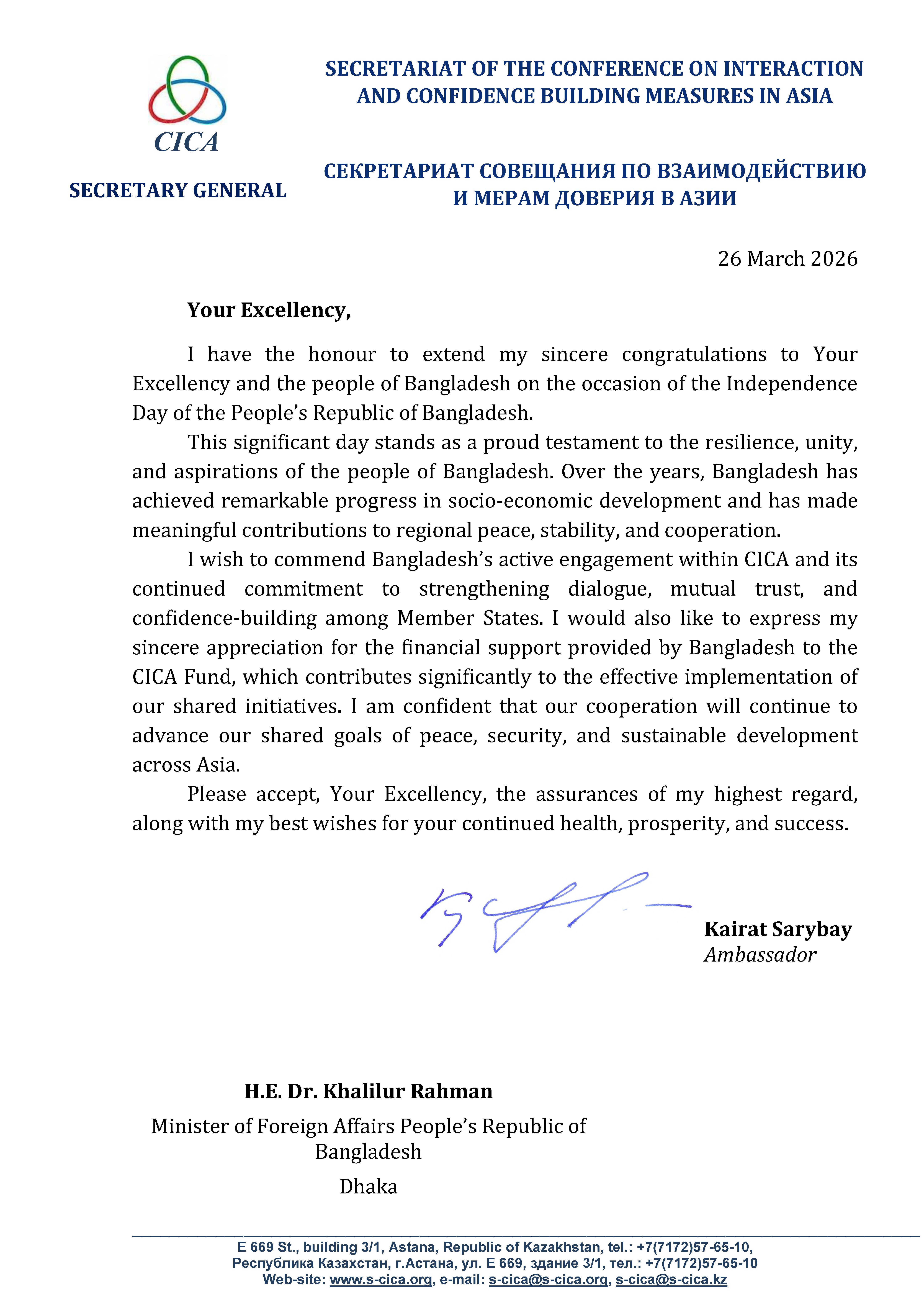 Statements and Remarks of CICA Secretary General Ambassador Kairat Sarybay