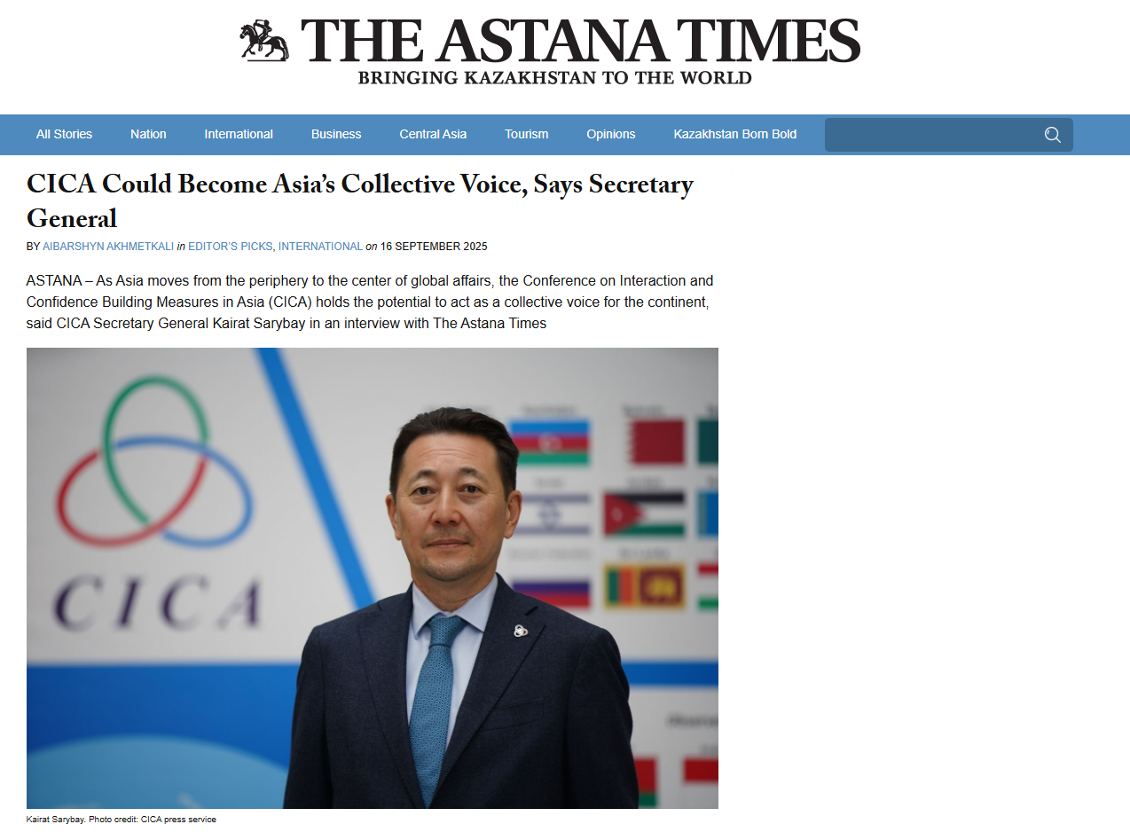 Interview of CICA Secretary General Kairat Sarybay for The Astana Times