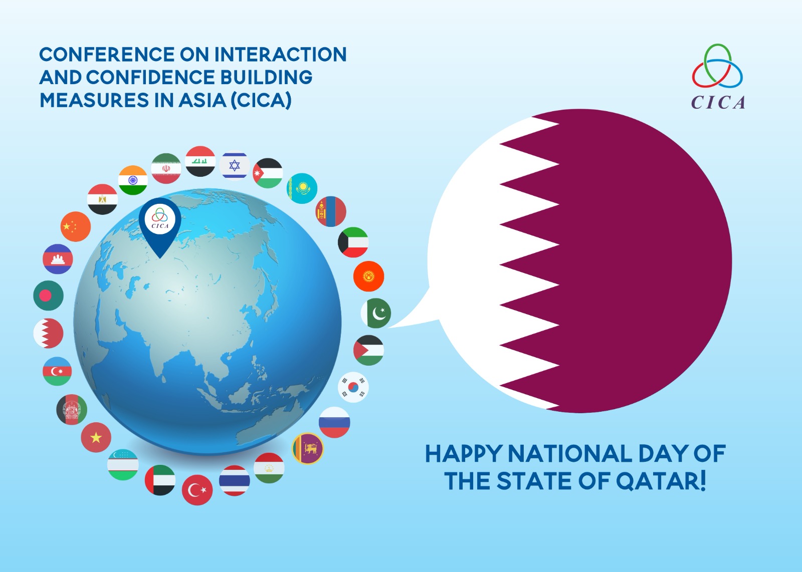 Секретариат Совещания по взаимодействию и мерам доверия в Азии сердечно поздравляет Государство Катар с Национальным днем.