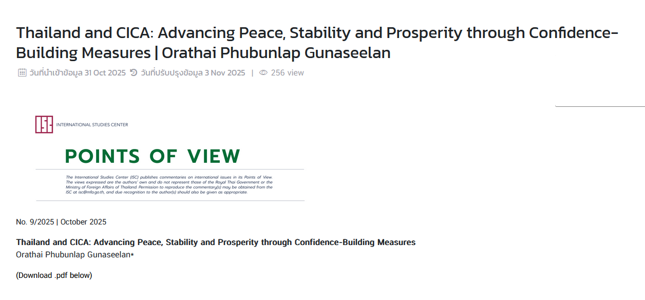 Article by Dr. Orathai Phubunlap Gunaseelan: “Thailand and CICA: Advancing Peace, Stability and Prosperity through Confidence-Building Measures.”