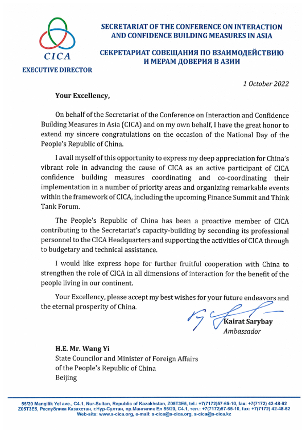 Statements and Remarks of CICA Secretary General Ambassador Kairat Sarybay