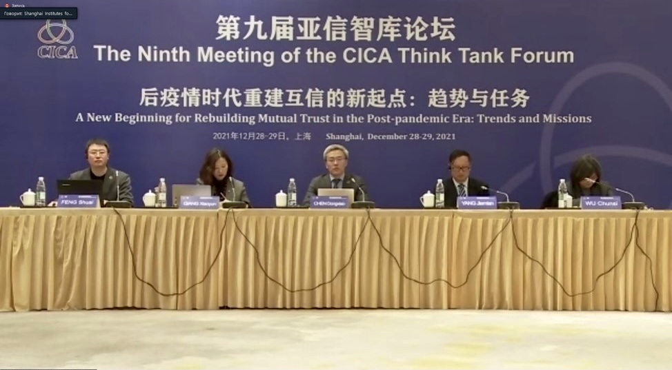 On 28-29 December 2021, the Think Tank Forum of the Conference on Interaction and Confidence Building Measures in Asia held its Ninth meeting in the format of a videoconference that was chaired by the Shanghai Institutes for International Studies (SIIS). It was the first meeting of the TTF as a permanent advisory body of CICA. The meeting was attended by heads and experts from leading think tanks and research institutes of CICA Member States.