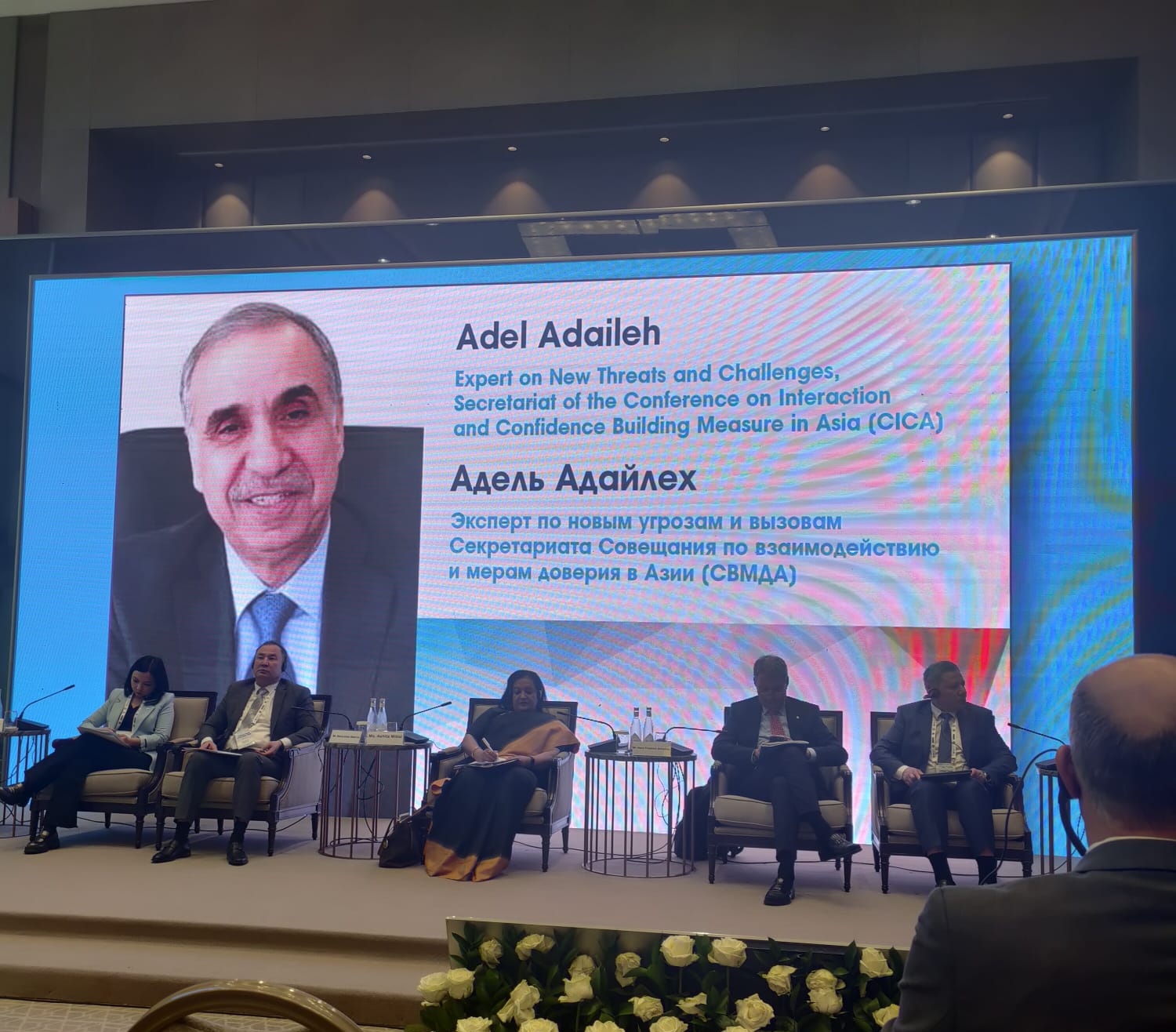 The presentation of the Secretariat's Expert on New Challenges and Threats Ambassador Adel Adaileh during one of the thematic sessions of the Conference received good feedback. Ambassador Adel Adaileh emphasized the strong commitment of the CICA Member States to preventing and combating terrorism, which was reflected in the updated Catalogue of Confidence Building Measures of 2021. He also briefed the panel participants on some projects in this direction, implemented recently within the framework of CICA.