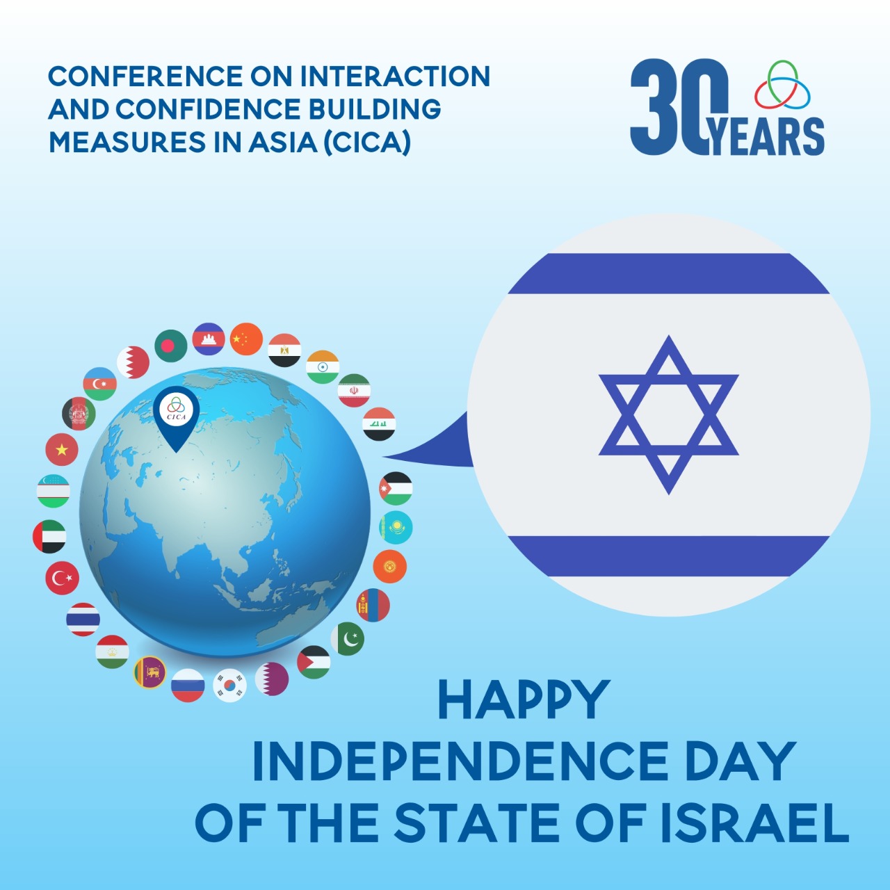 The Secretariat of the Conference on Interaction and Confidence Building Measures in Asia extends its warmest congratulations on the occasion of the Independence Day of the State of Israel.