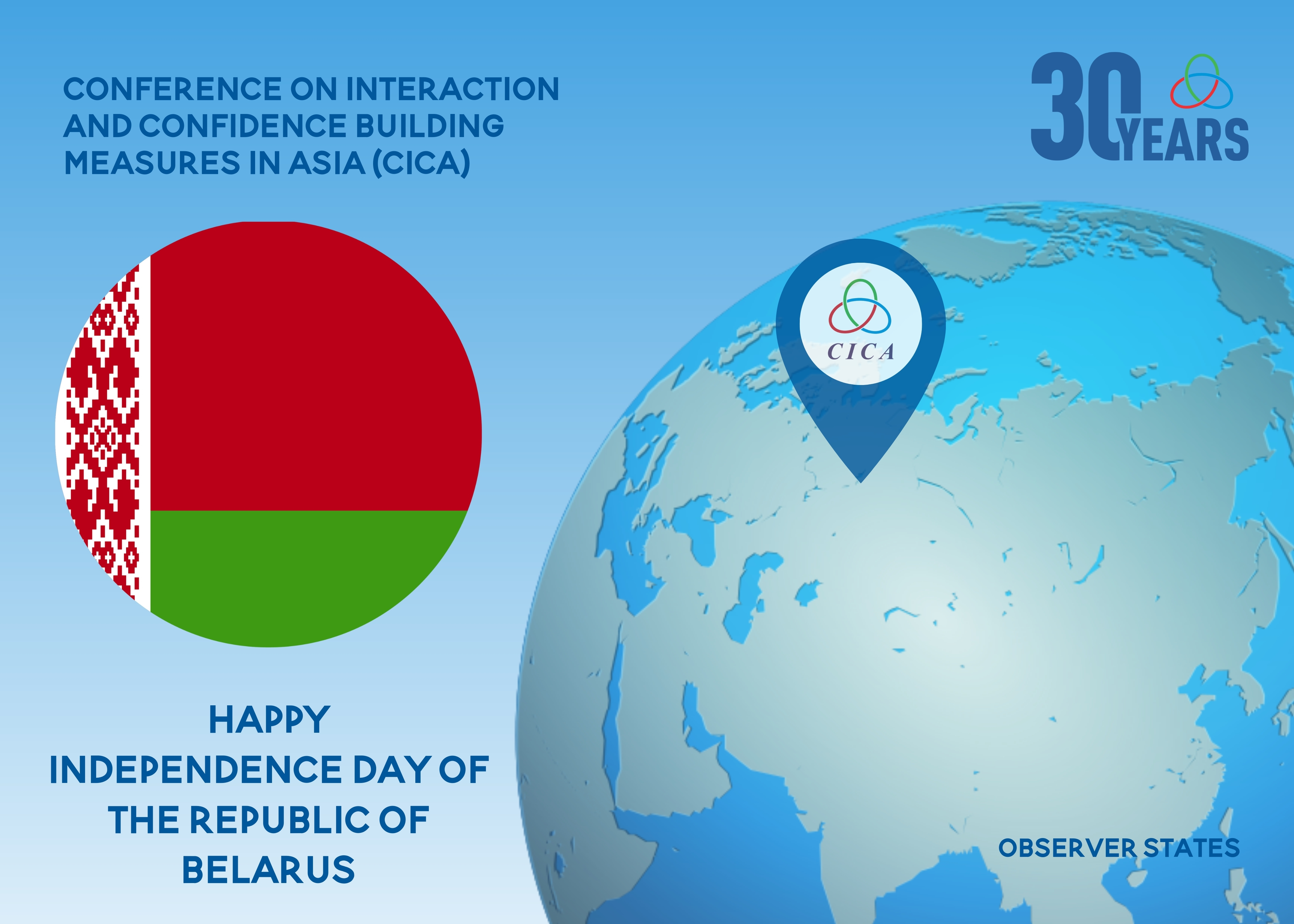 The Secretariat of the Conference on Interaction and Confidence Building Measures in Asia (CICA) extends its congratulations on the occasion of the Independence Day of the Republic of Belarus, the CICA Observer State.
