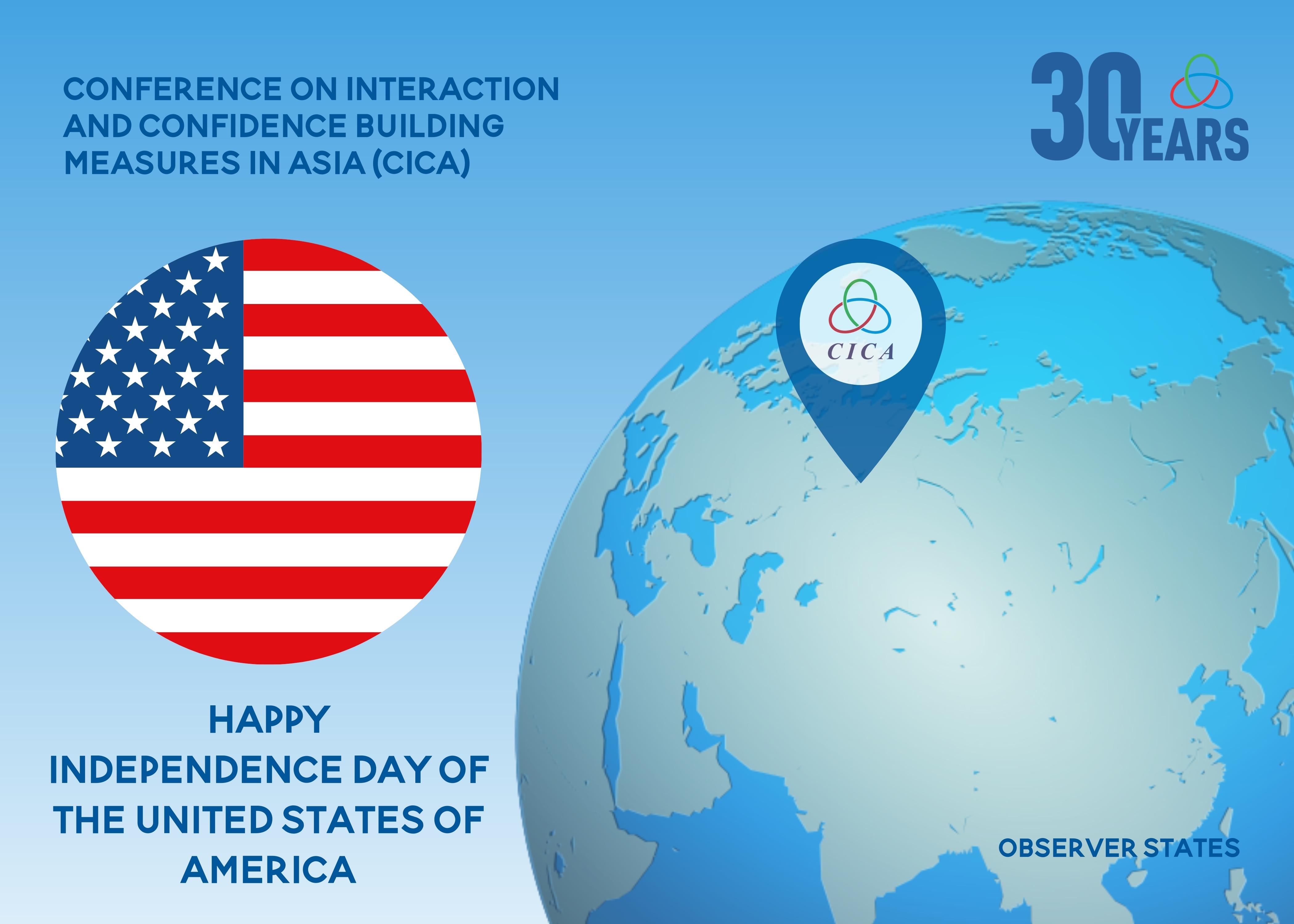 The Secretariat of the Conference on Interaction and Confidence Building Measures in Asia (CICA) extends its heartfelt congratulations on the occasion of the 246th Anniversary of the Independence of the United States of America.