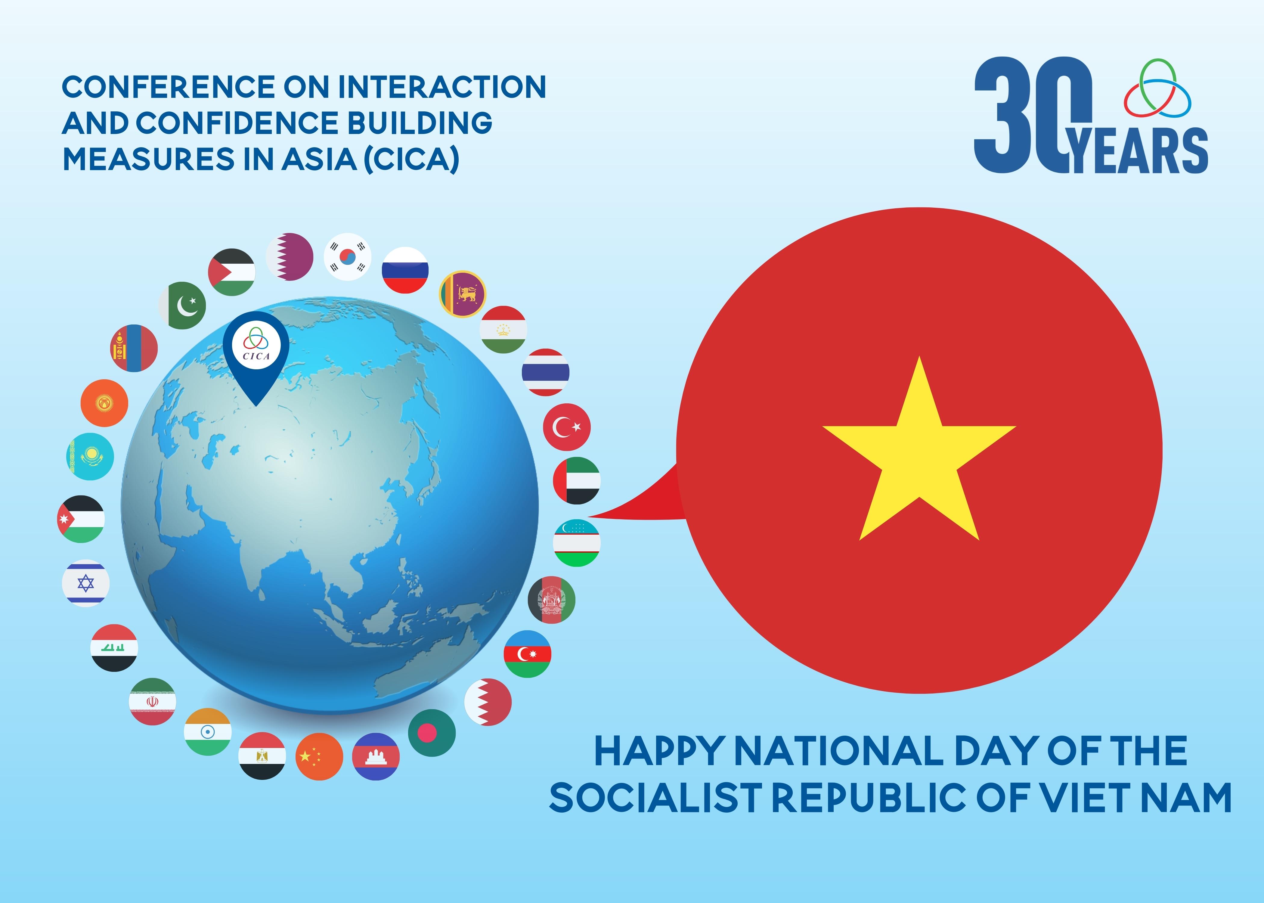 The Secretariat of the Conference on Interaction and Confidence Building Measures in Asia (CICA) has a great honour to extend sincere congratulations on the occasion of the National Day of the Socialist Republic of Viet Nam.