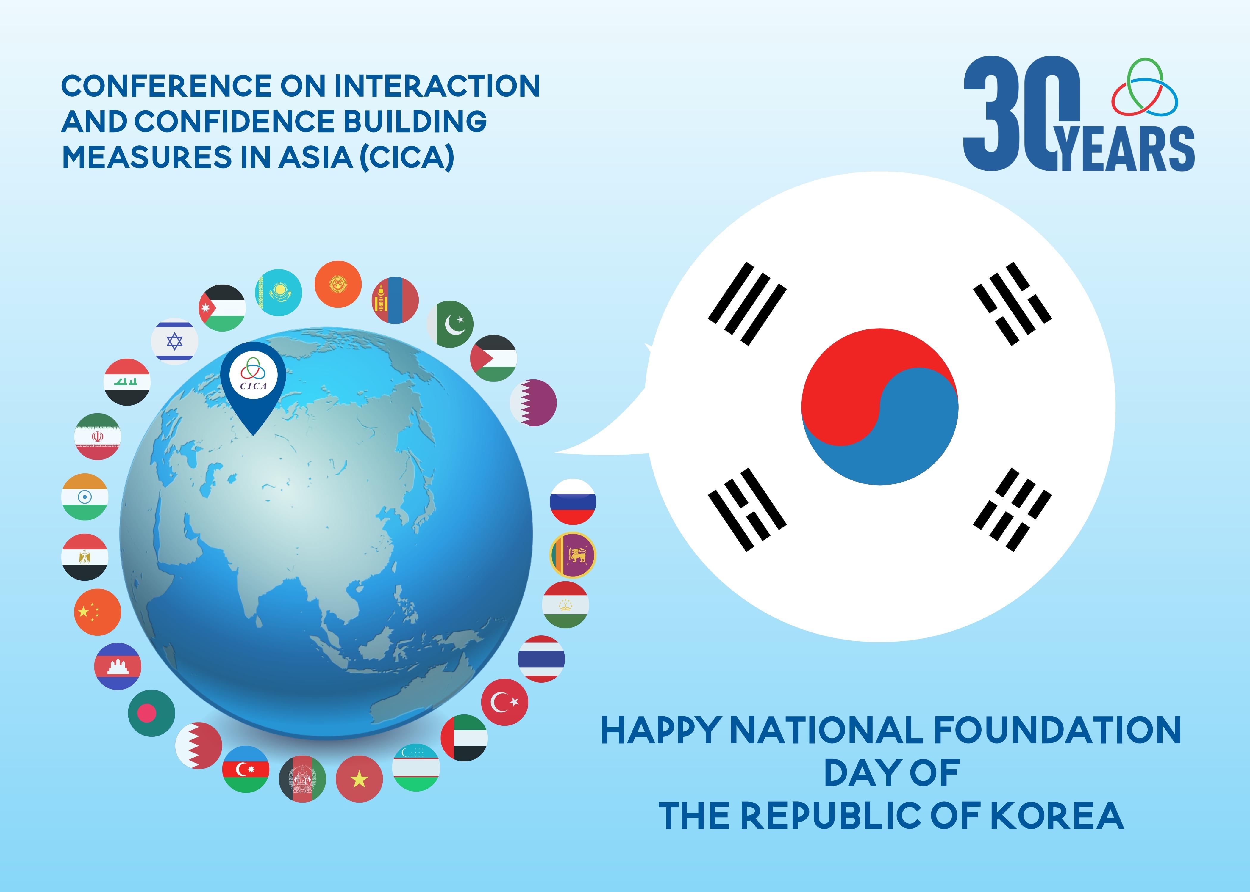 The Secretariat of the Conference on Interaction and Confidence Building Measures in Asia (CICA) expresses its sincere congratulations on the solemn occasion of the National Foundation Day of the Republic of Korea.