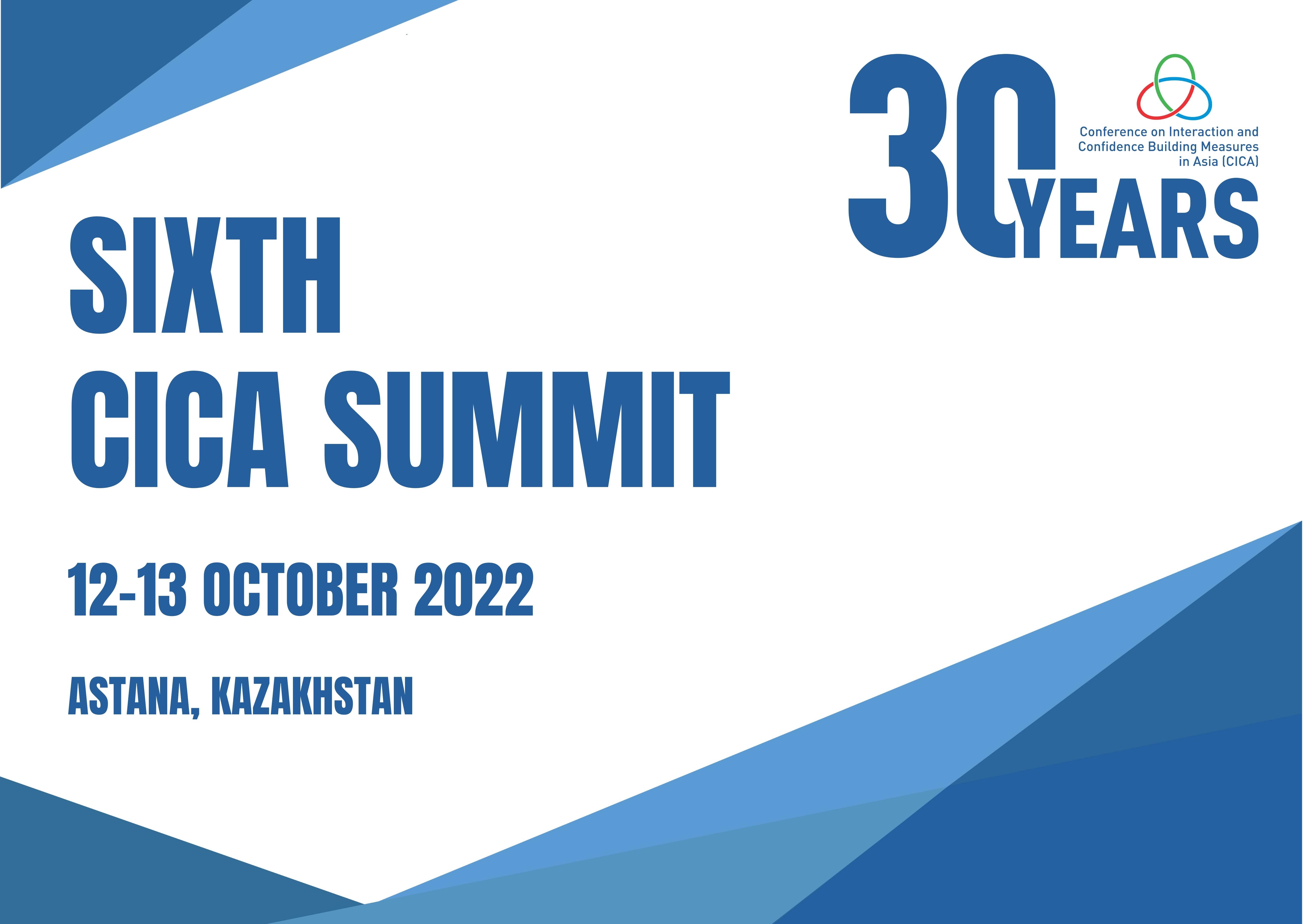 The Sixth Summit of the Conference on Interaction and Confidence Building Measures in Asia (CICA) with the participation of CICA member states, observers and partner organizations as well as a number of guests of the Kazakhstan’s Chairmanship will be held on 12-13 October 2022 in Astana.