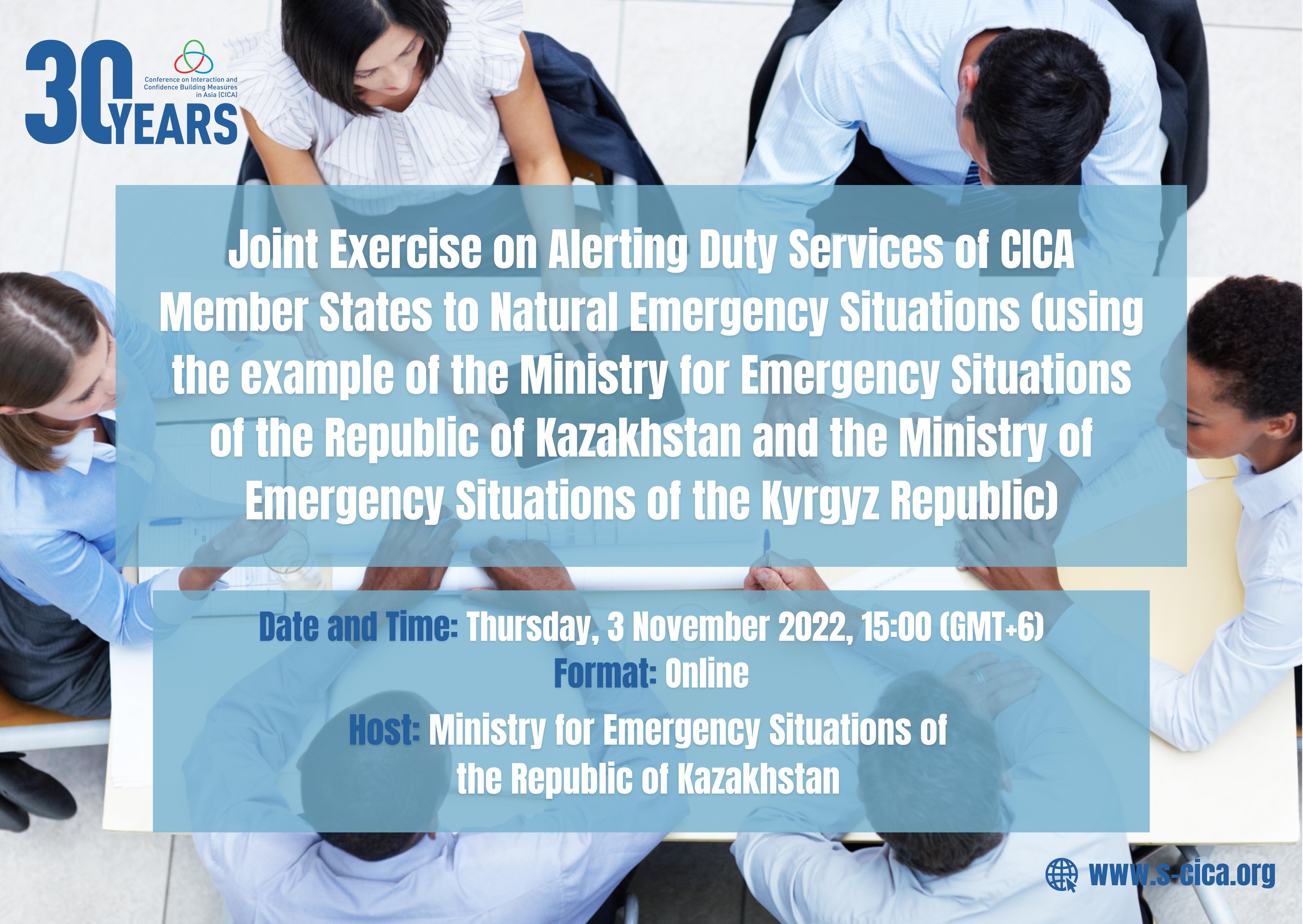 Participants: Crisis Management Center of the Ministry for Emergency Situations of the Republic of Kazakhstan and the Crisis Management Center of the Ministry of Emergency Situations of the Kyrgyz Republic, representatives of the emergency departments of the CICA Member States (as observers).