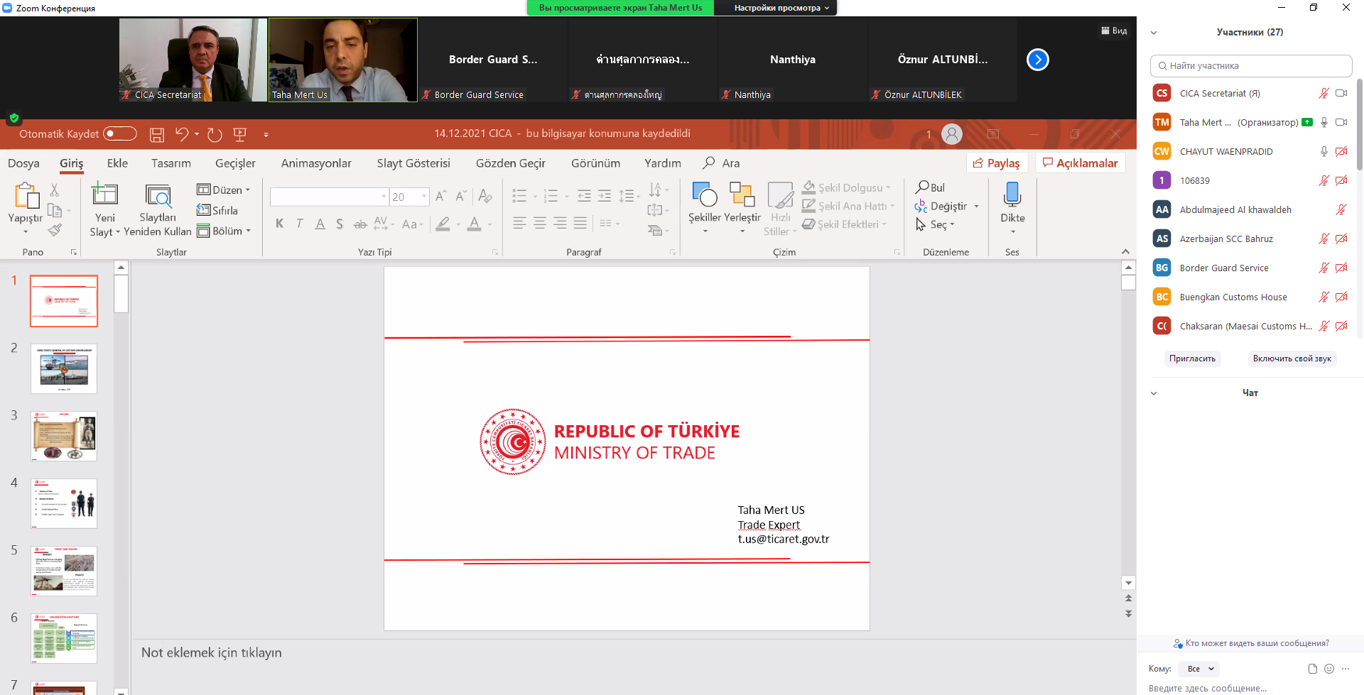 On 14 December, the Directorate General of Customs Enforcement of the Ministry of Trade of Türkiye organized an online briefing for the Member States of the Conference on Interaction and Confidence Building Measures in Asia (CICA) on scanning systems, use of technical equipment and projects. This event was the last one in a series of seminars held by the Republic of Türkiye in 2022 as the coordinator in the priority area of new challenges and threats within the framework of confidence building measures of CICA.