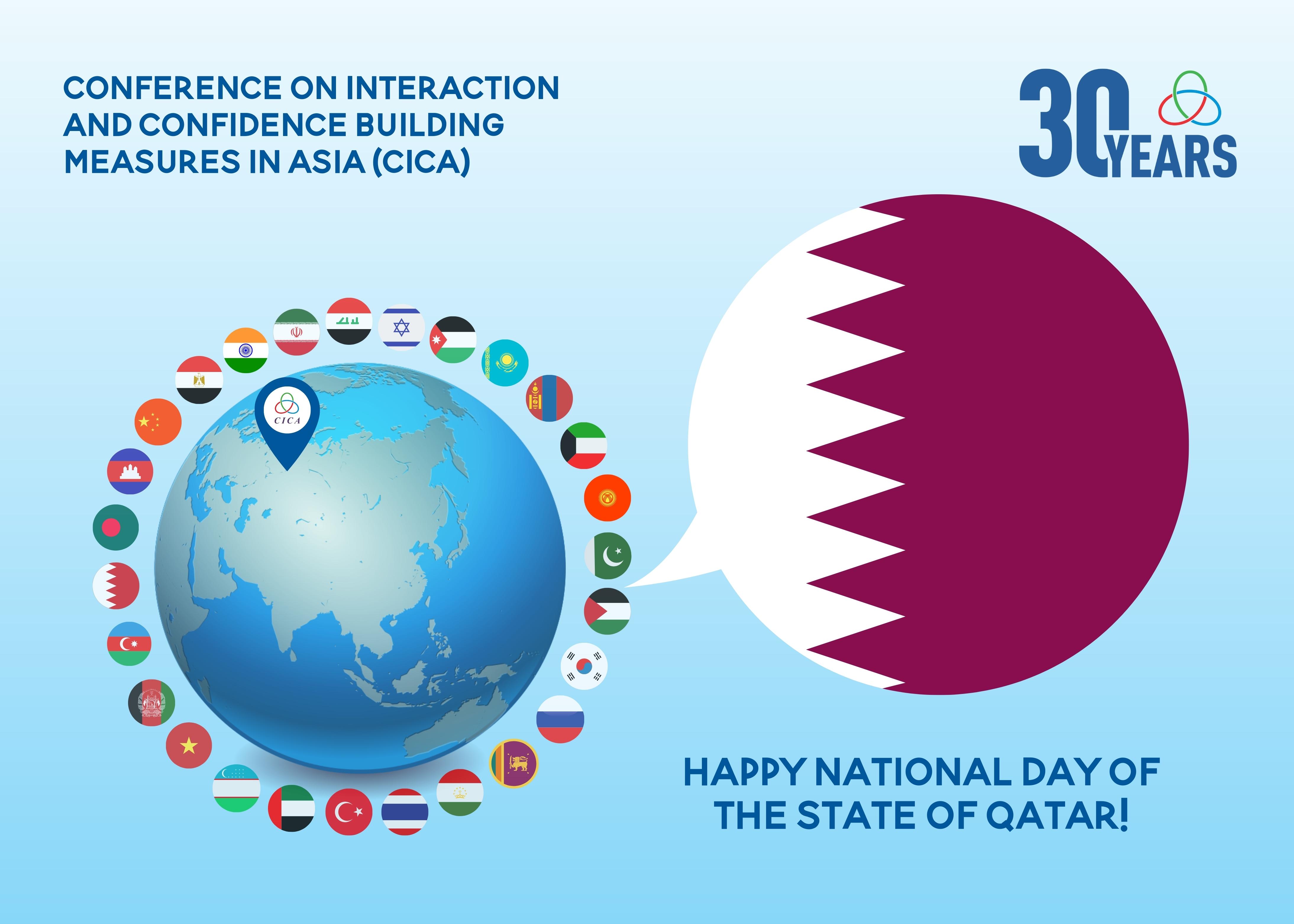 The Secretariat of the Conference on Interaction and Confidence Building Measures in Asia (CICA)extends its warmest congratulations on the National Day of the State of Qatar.