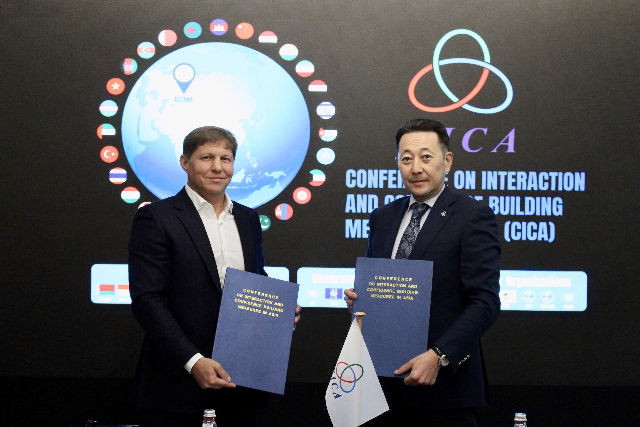 With a view to implement the decision on the transformation of the Conference on Interaction and Confidence Building Measures in Asia (CICA) adopted at the historic Sixth Summit of the Conference in October 2022, CICA Secretary General Ambassador Kairat Sarybay and Sensata Group CEO Maxim Mikhailov signed a trilateral Memorandum on the Construction of the CICA Headquarters Building. The Akimat (city administration) of Astana is another party to this agreement.
