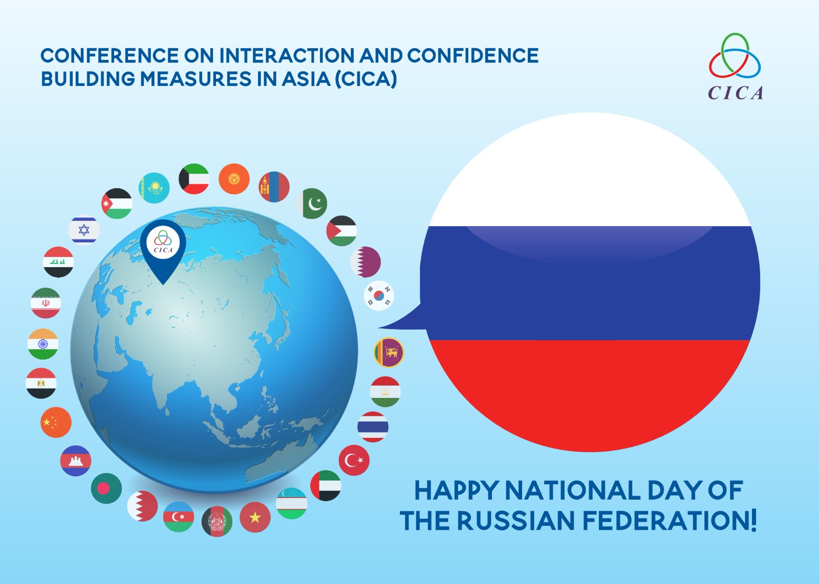 The Secretariat of the Conference on Interaction and Confidence Building Measures in Asia (CICA) extends its congratulations on the occasion of the Day of the Russian Federation.