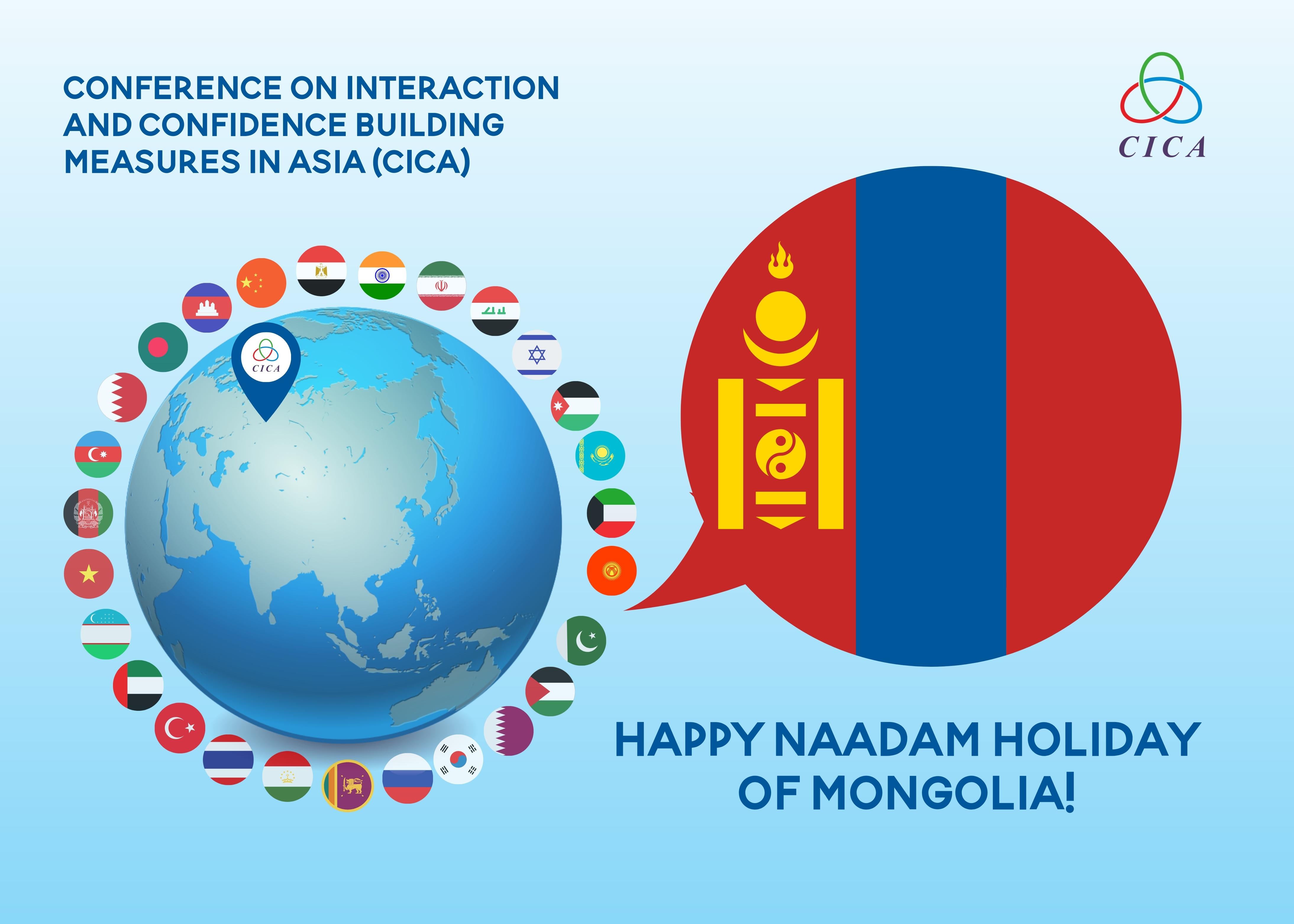 The Secretariat of the Conference on Interaction and Confidence Building Measures in Asia (CICA) conveys its sincere congratulations to Mongolia on its national holiday of Naadam.