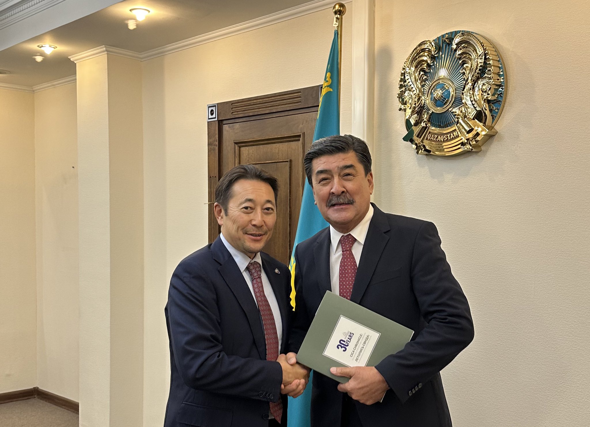 The Secretary General of the Conference on Interaction and Confidence Building Measures in Asia, Ambassador Kairat Sarybay met with the newly appointed Minister of Ecology and Natural Resources of Kazakhstan, Yerlan Nyssanbayev. The two sides discussed preparation efforts for the Conference of Ministers of CICA Member States on Environmental Issues, an event proposed by President Kassym-Jomart Tokayev during the Sixth CICA Summit on 13 October 2022.