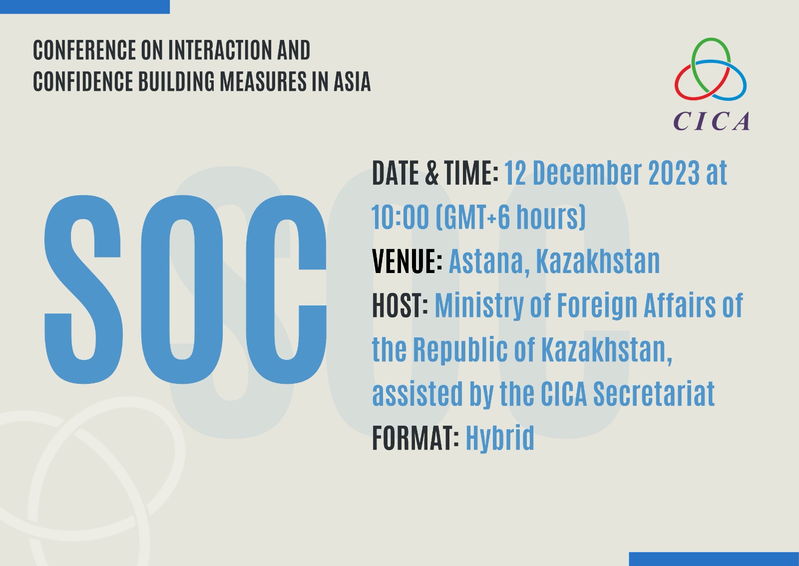 Host: Ministry of Foreign Affairs of the Republic of Kazakhstan, assisted by the CICA Secretariat
