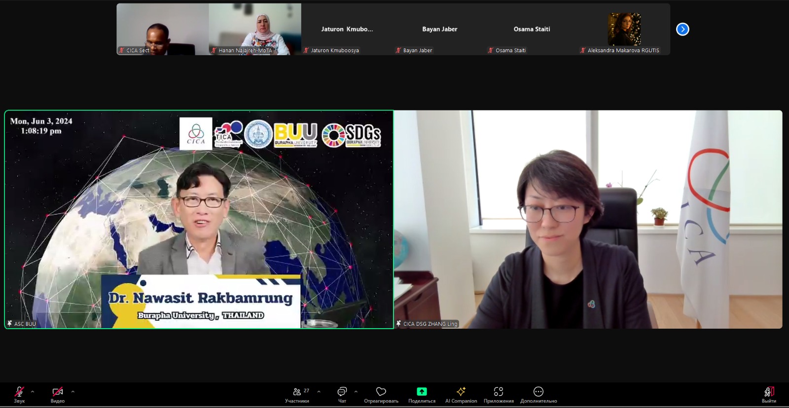 Astana, Kazakhstan – 3 June 2024 - An online training program on “Sustainable Creative & Responsible Tourism Development based on the BCG model for CICA countries” was launched, jointly organized by the Ministry of Foreign Affairs of Thailand, the Thailand International Cooperation Agency (TICA), the CICA Secretariat, and Burapha University. The programme, continuing until 14 June 2024, aims to equip participants with essential knowledge and skills for sustainable tourism practices, emphasizing the positive environmental, economic, and socio-cultural impacts within the tourism sector.