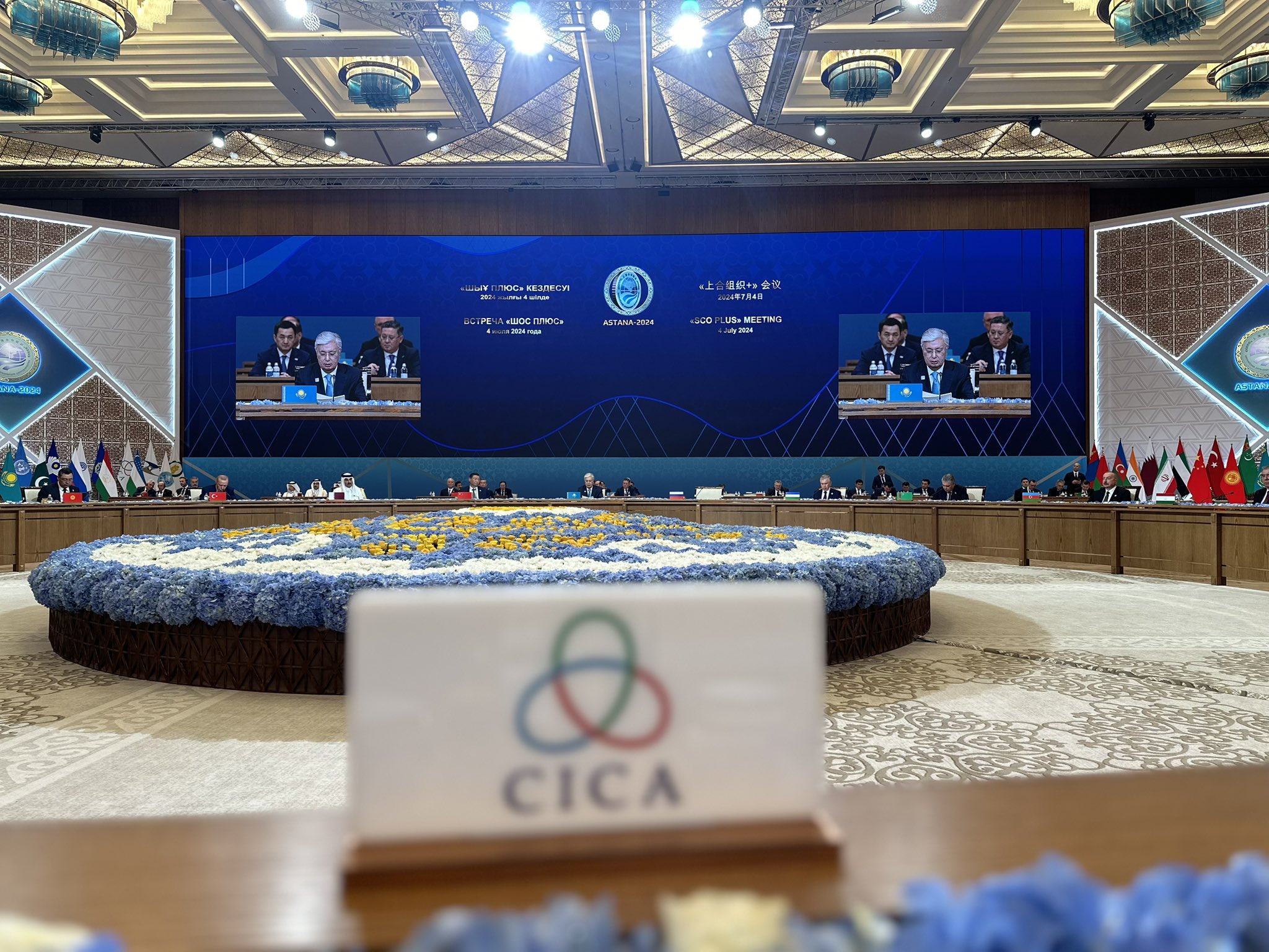 4 July 2024 – Astana, Kazakhstan - Secretary General of the Conference on Interaction and Confidence Building Measures in Asia (CICA) Ambassador Kairat Sarybay participated in the 24th meeting of the Council of Heads of State of the Shanghai Cooperation Organisation (SCO) Member States, which took place on 4 July 2024 in Astana and was chaired by the Republic of Kazakhstan. The event brought together the heads of member states, observer states, dialogue partners and international organizations that enjoy observer status with the SCO.