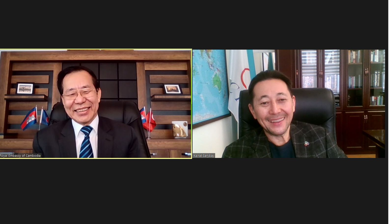 Prospects of development in CICA space by inter-regional cooperation and coordinated efforts were discussed during an online meeting between the Executive Director of the CICA Secretariat Ambassador Kairat Sarybay, and H.E. Mr. Kim Heng Meas Ambassador of Kingdom of Cambodia to the Republic of Turkey, on January 20, 2021. Ambassador Kim Heng Meas is concurrently responsible for cooperation with CICA.