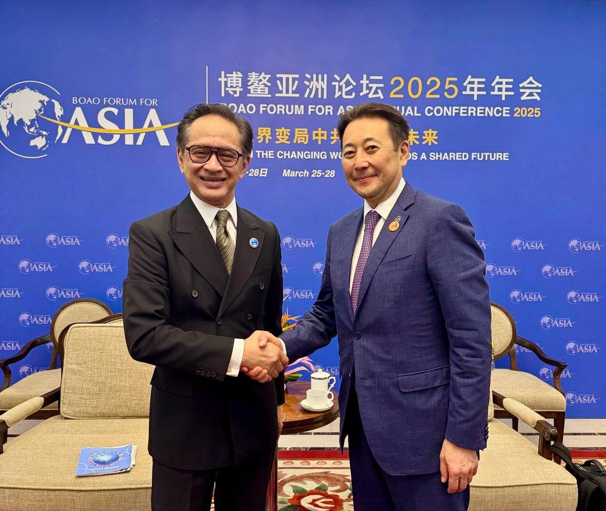 On the sidelines of the BFA 2025, Ambassador Sarybay met with Secretary General of the Asia Cooperation Dialogue Ambassador Mr. Nasser Al-Mutairi, to discuss CICA, the ACD and other regional organizations that can synergy efforts towards better connectivity and multilateralism.