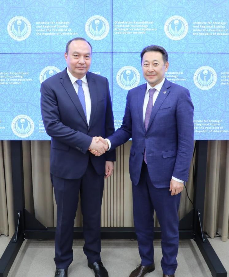During the meeting with Mr. Eldor Aripov, Director of the Institute for Strategic and Regional Studies under the President of the Republic of Uzbekistan, the discussion addressed the regional agenda and the need to strengthen sustainable connectivity in Asia. Ambassador Sarybay informed the counterpart about the preparations for the 13th meeting of the CICA Think Tank Forum, scheduled to take place in Baku this September.