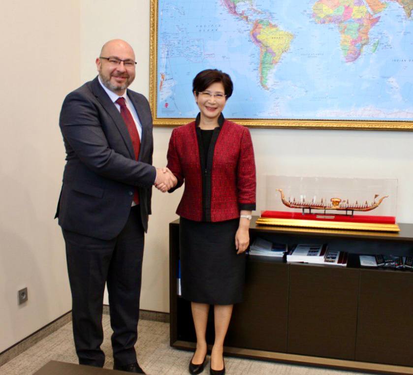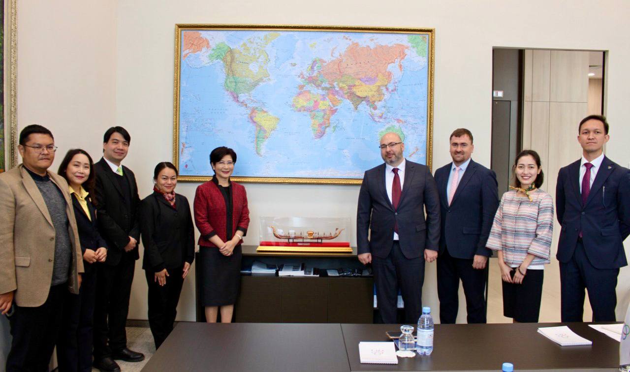 Astana, 1 October 2025 – CICA Deputy Secretary General Farid Damirli welcomed a delegation from the Ministry of Foreign Affairs of the Kingdom of Thailand and Chulalongkorn University, led by H.E. Piyapin Niyomrerks, Ambassador Extraordinary and Plenipotentiary of the Kingdom of Thailand, who presented the Secretariat with a replica of the “Suphannahong” Royal Barge.