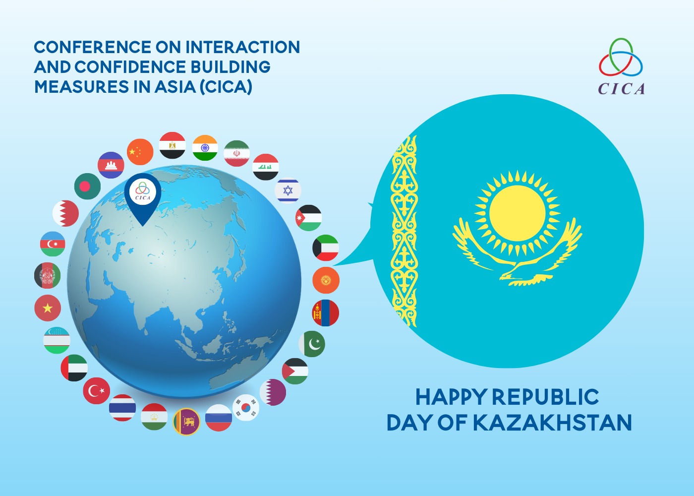 The Secretariat of the Conference on Interaction and Confidence Building Measures in Asia (CICA) extends its sincere congratulations to the Republic of Kazakhstan on the occasion of Republic Day.