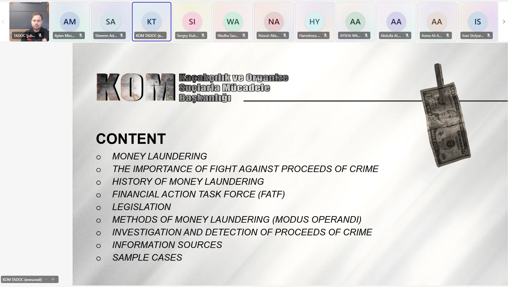 An online seminar was held on 20-24 October 2025 as part of the Law Enforcement Training Programme on Anti-Money Laundering and Counter Financing of Terrorism for the Member States of the Conference on Interaction and Confidence Building Measures in Asia (CICA). The event was organized by the Turkish International Academy against Drugs and Organized Crime (TADOC) in cooperation with the CICA Secretariat. It was attended by 46 representatives of the CICA Member States, including Azerbaijan, Bahrain, Bangladesh, Iran, Jordan, Kazakhstan, Palestine, Qatar, and the Russian Federation.