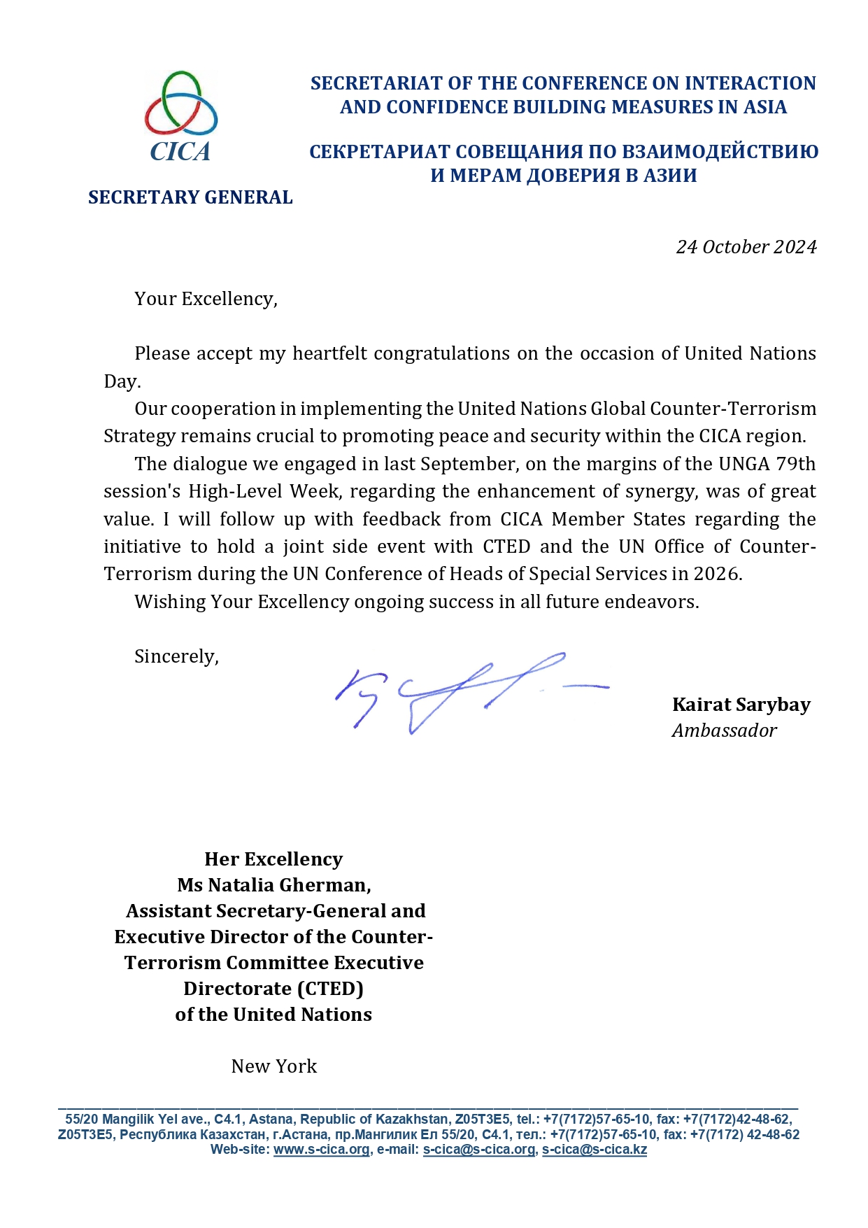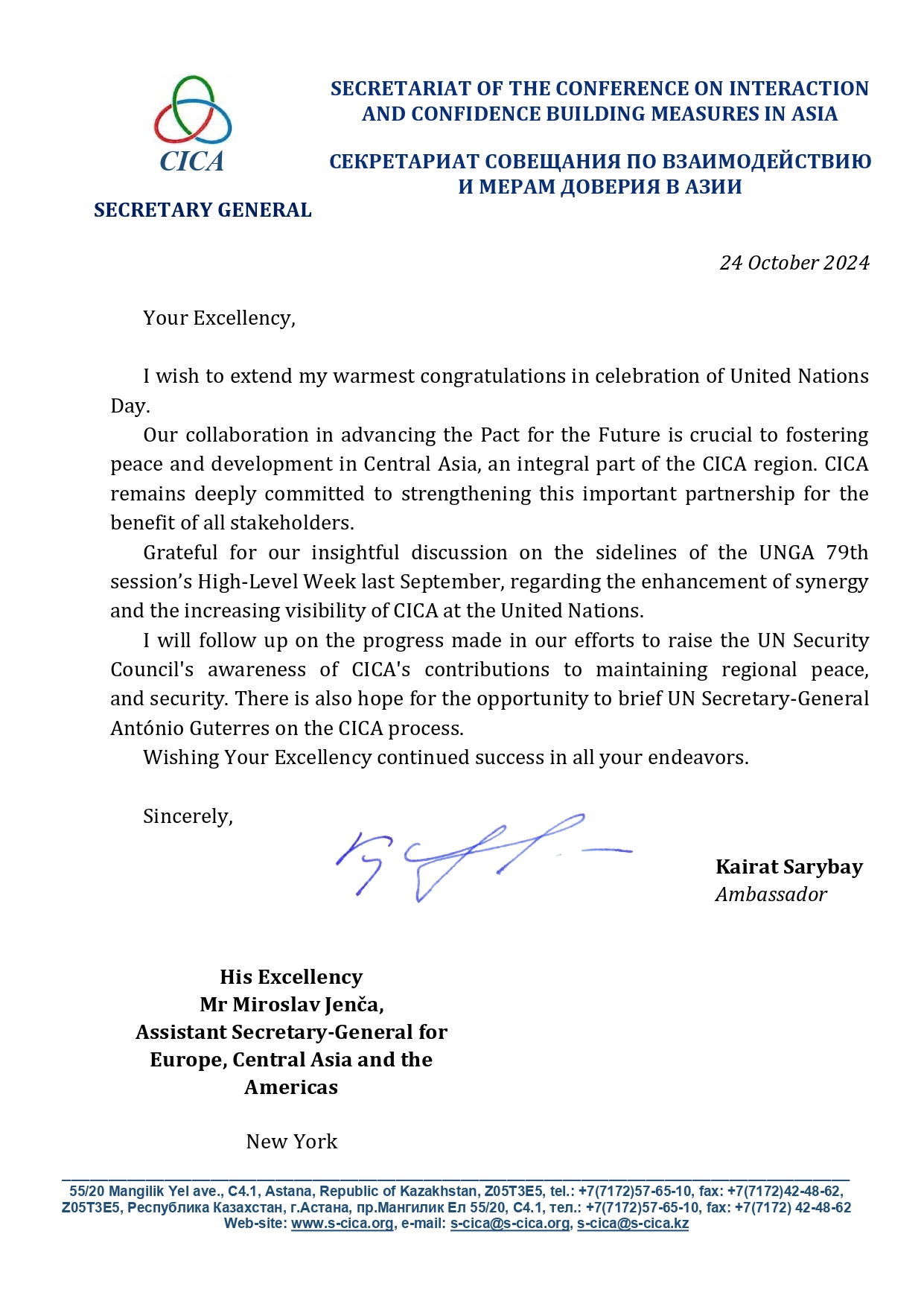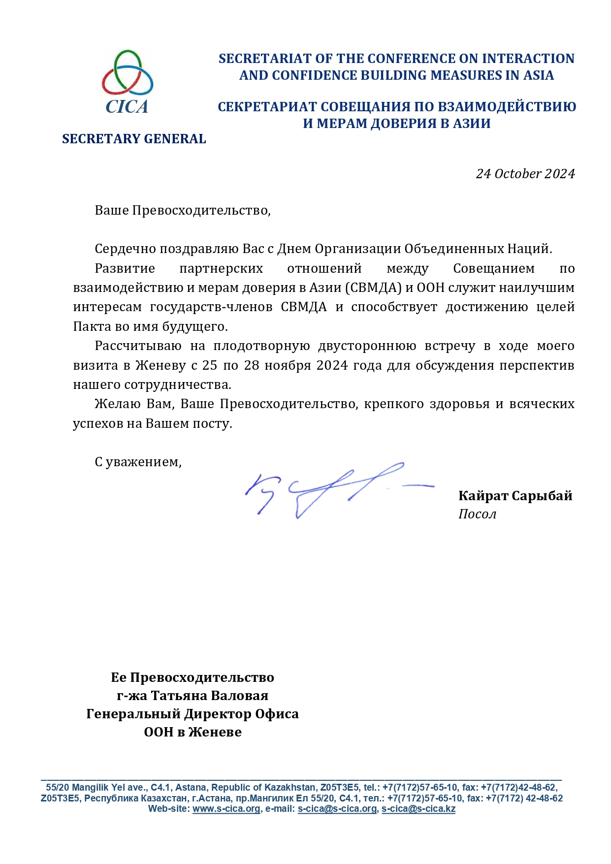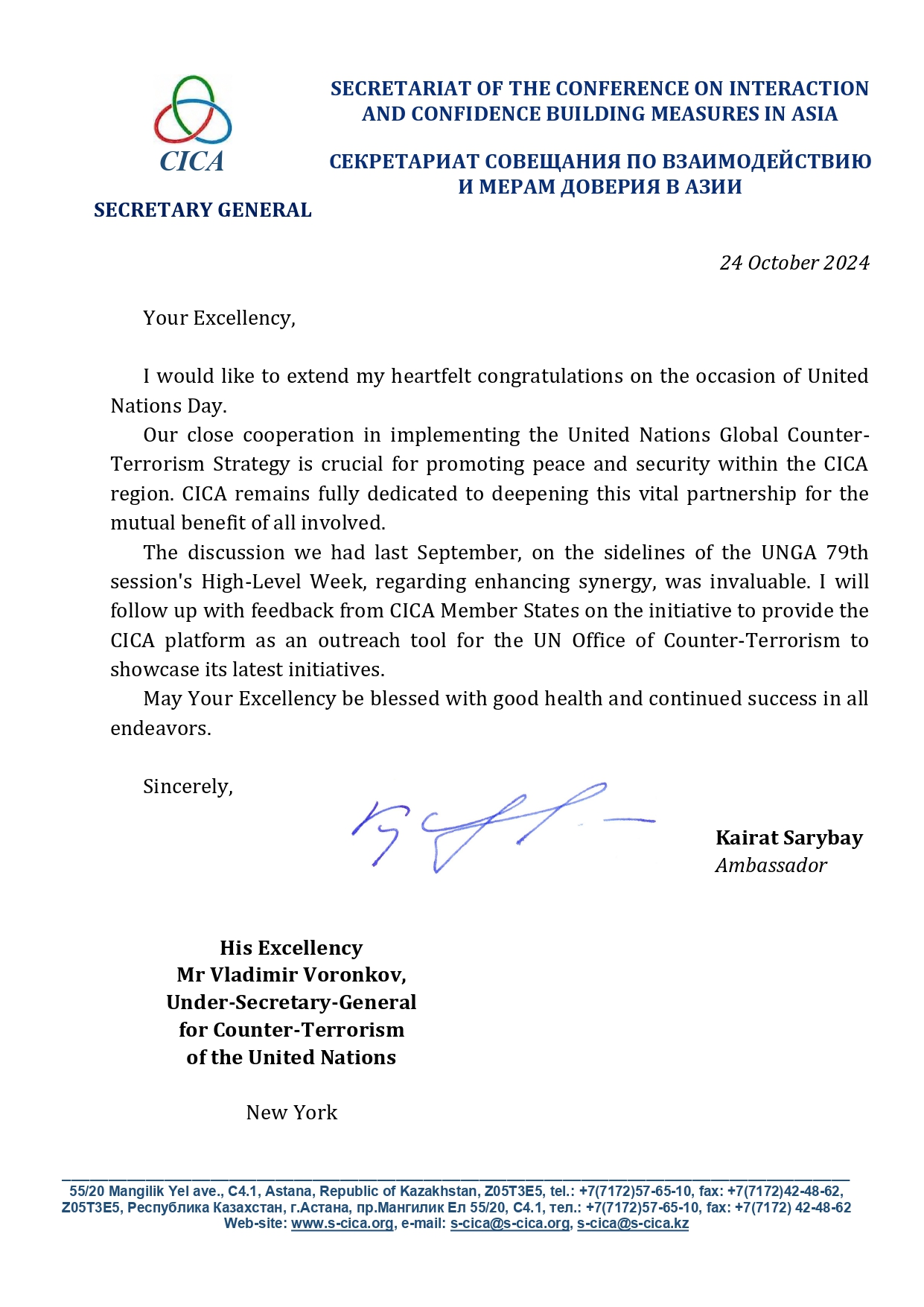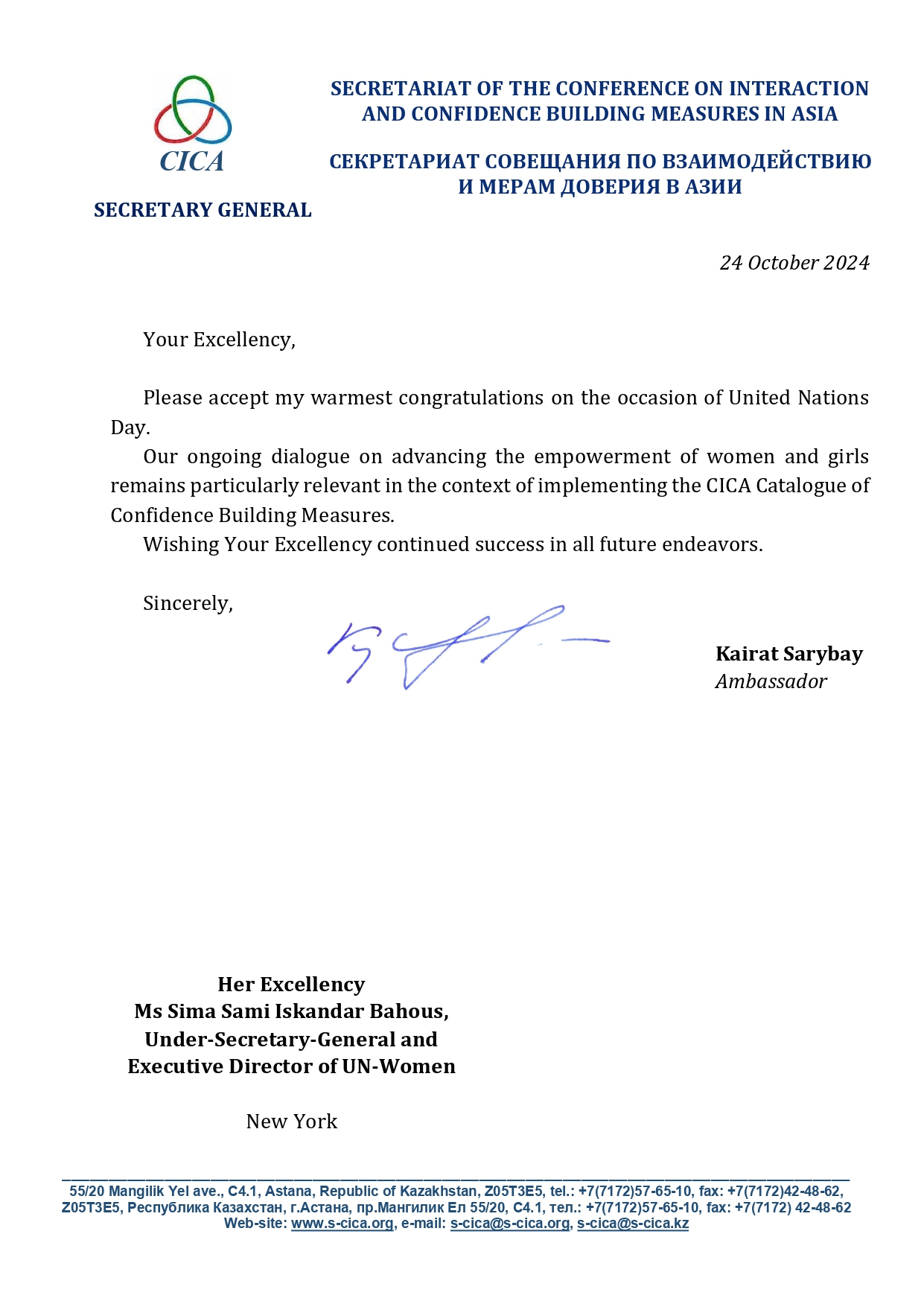 Statements and Remarks of CICA Secretary General Ambassador Kairat Sarybay
