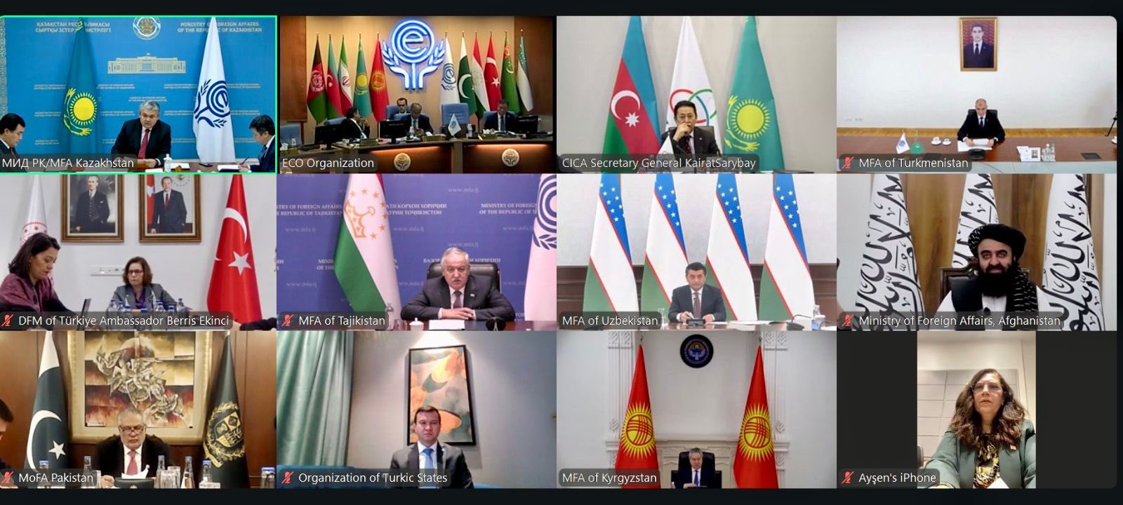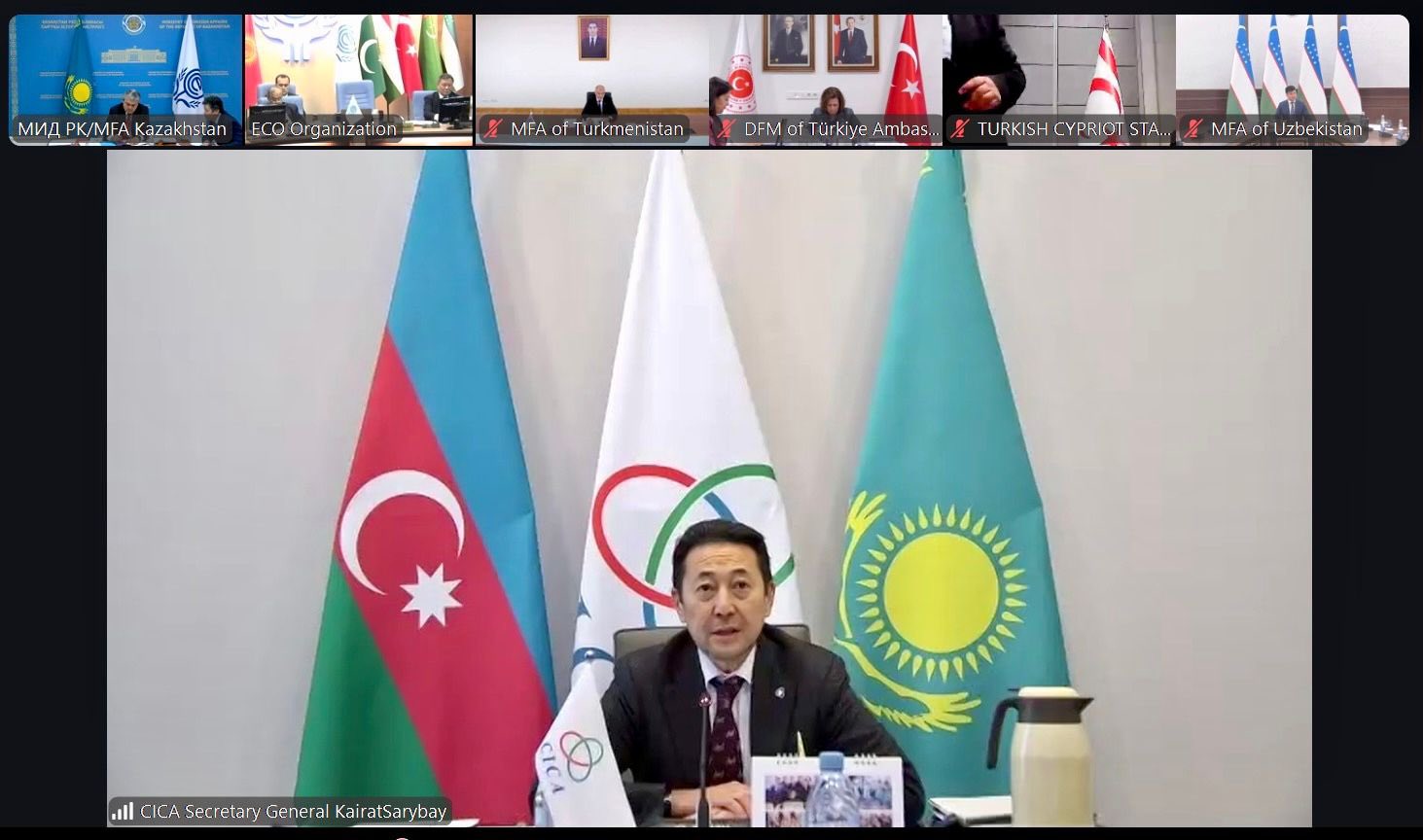 28 November 2025 — The Secretary General of the Conference on Interaction and Confidence Building Measures in Asia (CICA), Ambassador Kairat Sarybay, participated in the 29th Meeting of the Council of Ministers of the Economic Cooperation Organization (ECO), held in an online format. The session, chaired by H.E. Yermek Kosherbayev, Minister of Foreign Affairs of the Republic of Kazakhstan and the ECO Chair for 2025, brought together the Foreign Ministers and high-ranking representatives of Iran, Kyrgyzstan, Tajikistan, Uzbekistan, Pakistan, Afghanistan, Turkmenistan, Azerbaijan and Türkiye.