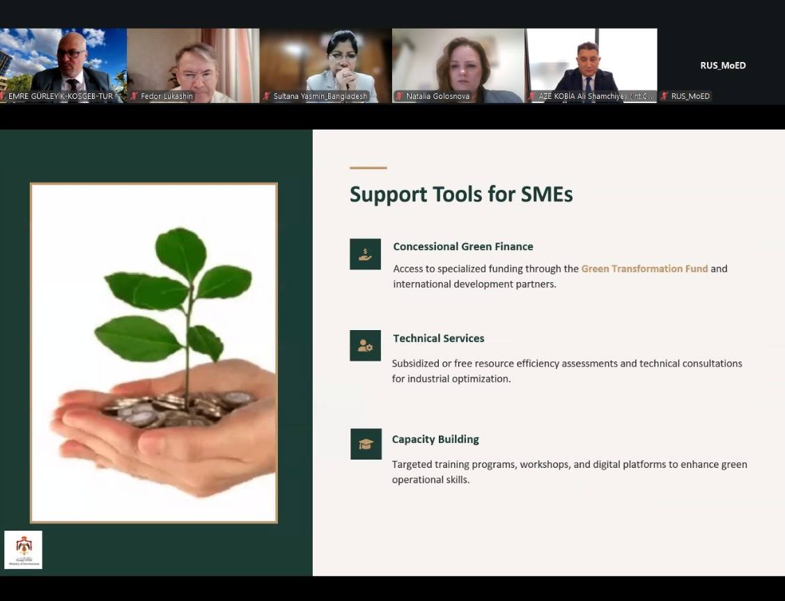 Opening the webinar, Mr. Elnur Aliyev, Adviser to the Chairman of KOBİA, referred to Azerbaijan’s COP29 experience, stressing the need to place SMEs at the center of the green transition. He noted that despite their significant cumulative environmental impact, SMEs remain underrepresented in global climate discussions, and highlighted the Baku Climate Coalition for SMEs Green Transition launched at COP29 as a platform promoting coordinated support from governments, financial institutions and international partners, particularly in addressing financing challenges.