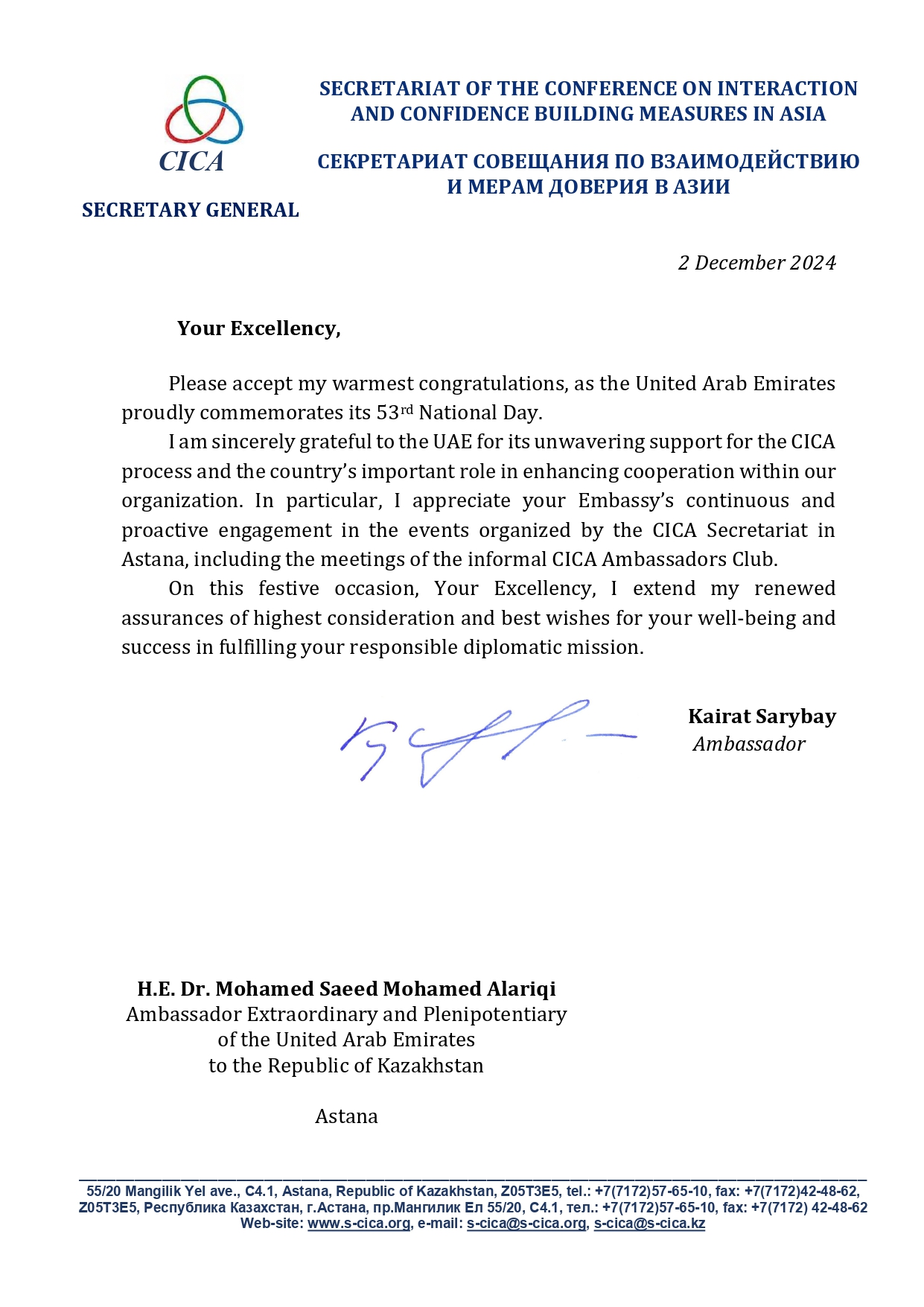 Statements and Remarks of CICA Secretary General Ambassador Kairat Sarybay
