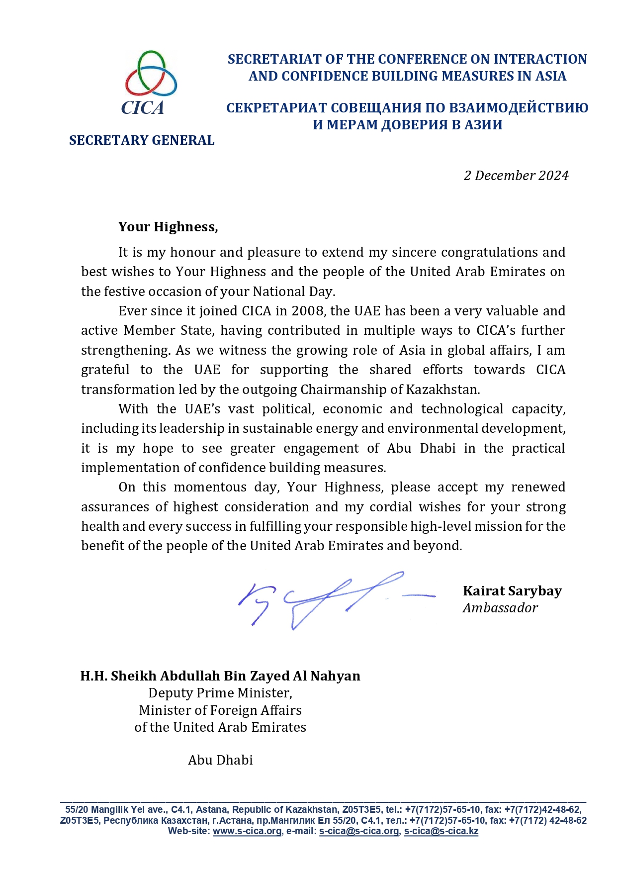 Congratulation letters on the occasion of the National Day of the United Arab Emirates
