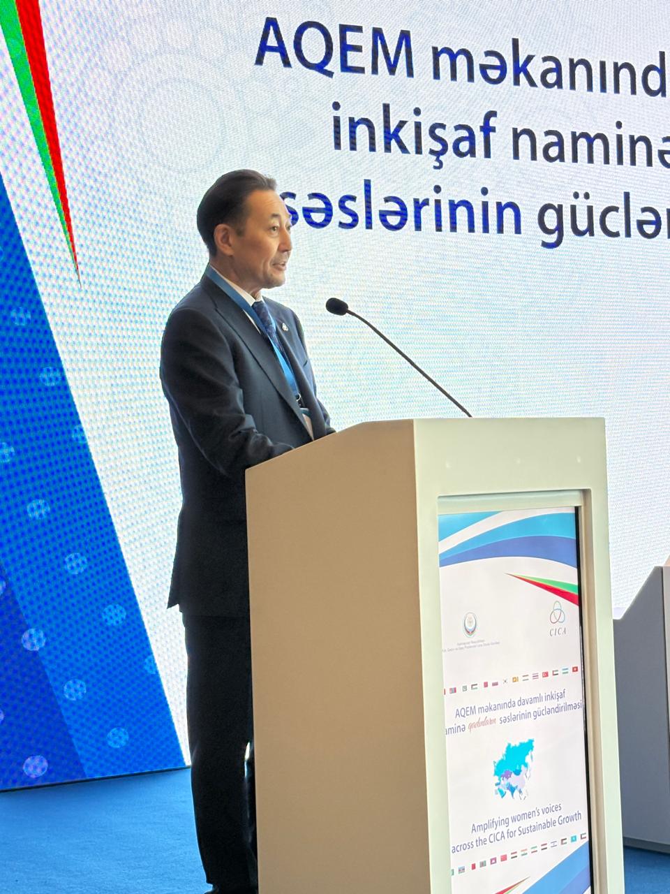 Prior to Women Council’s first meeting, Secretary General Sarybay participated in the conference "Amplifying Women’s Voices across CICA for Sustainable Growth", hosted by the Azerbaijani Chairmanship and the State Committee for Family, Women and Children Affairs of the Republic of Azerbaijan.
