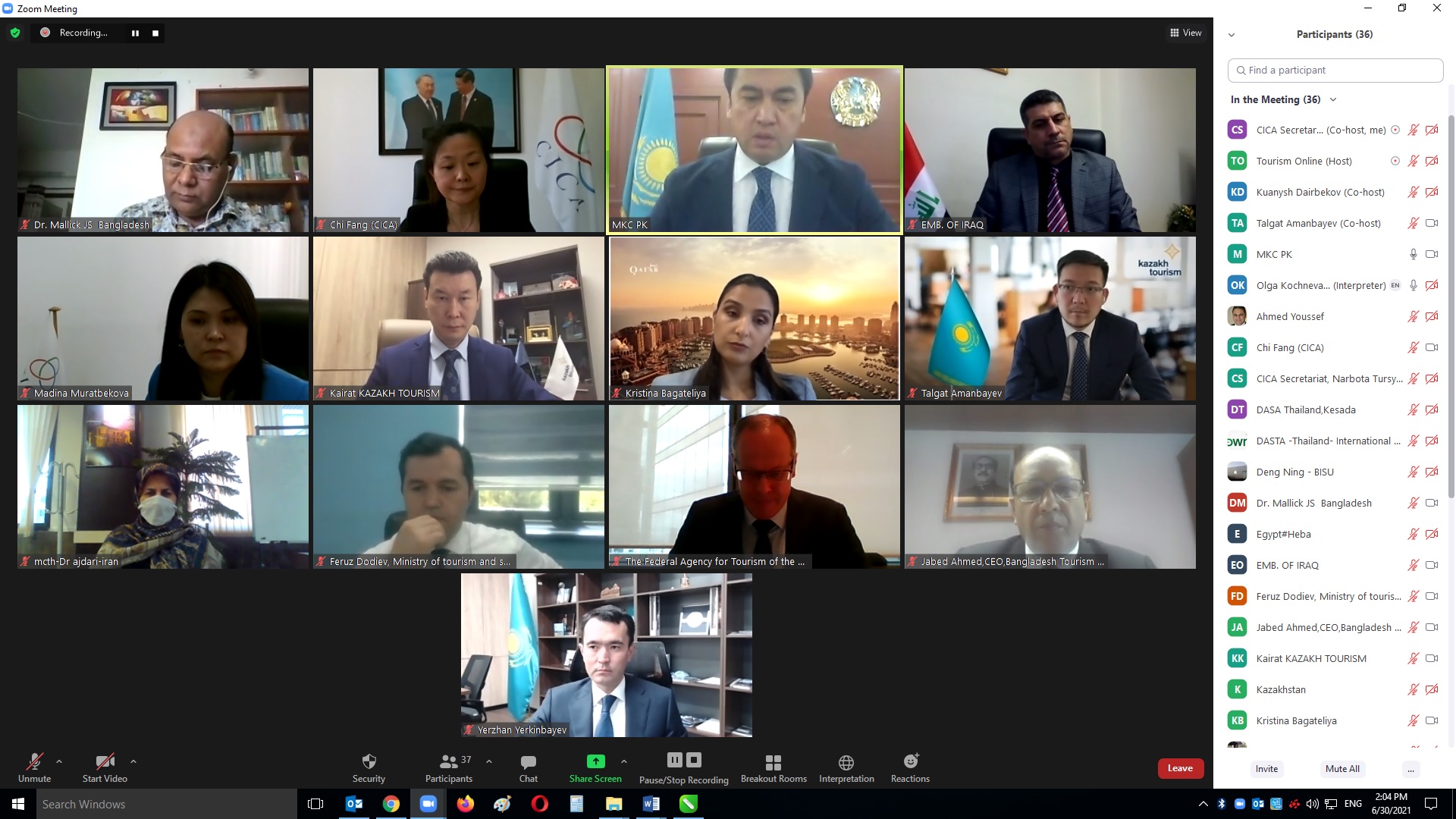 Prospects for development of tourism in the post-pandemic period were discussed by representatives of agencies and departments of CICA Member States in an online session on 30 June 2021.