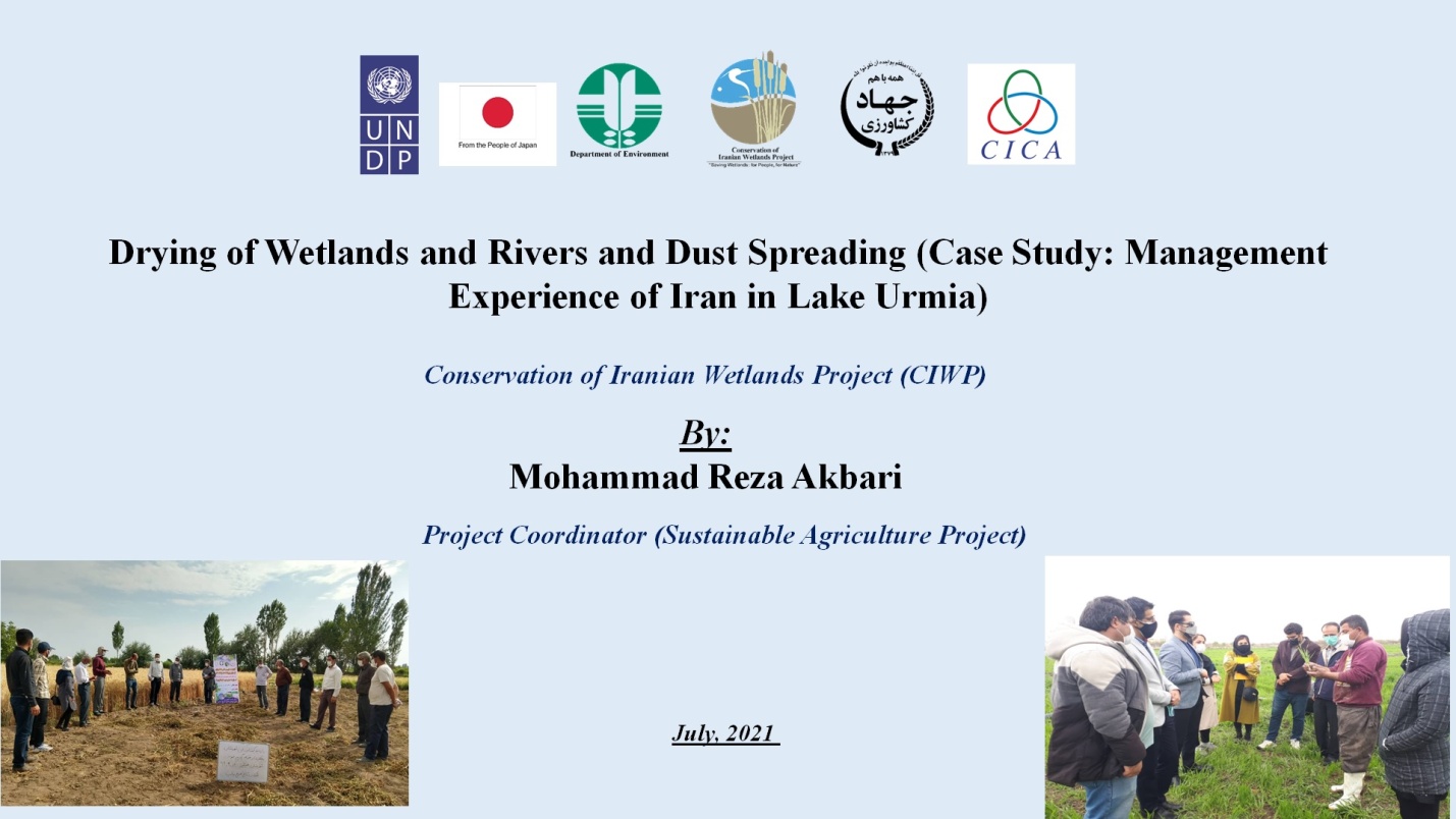 The best practices and experience in Natural Disaster Management was shared by the Republic of Iran in capacity of coordinator of CBMs in this area, at an online CICA seminar “Drying of Wetlands and Rivers and Dust Spreading - Case Study: Management Experience of Iran in Urmia Lake”, held on 13 July 2021.