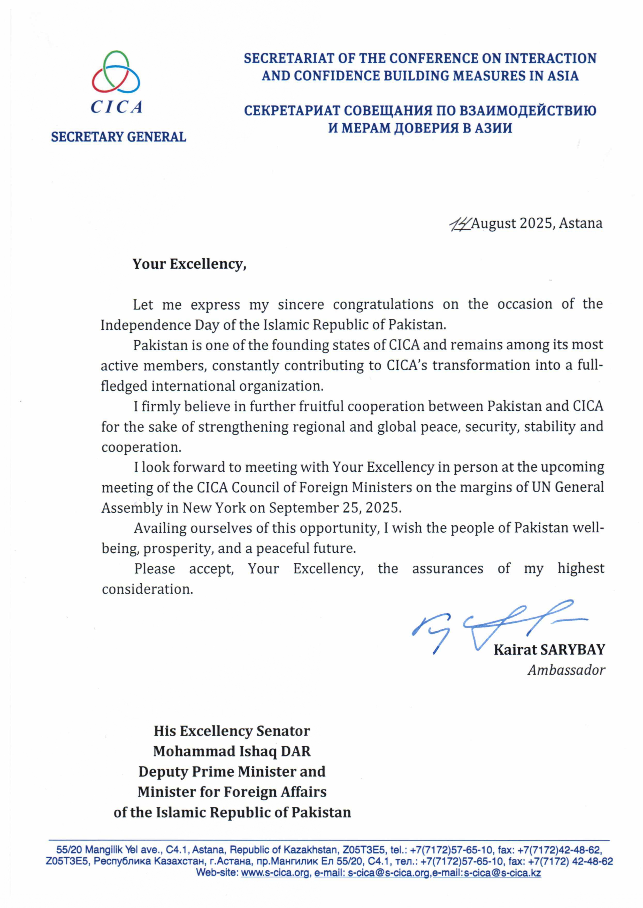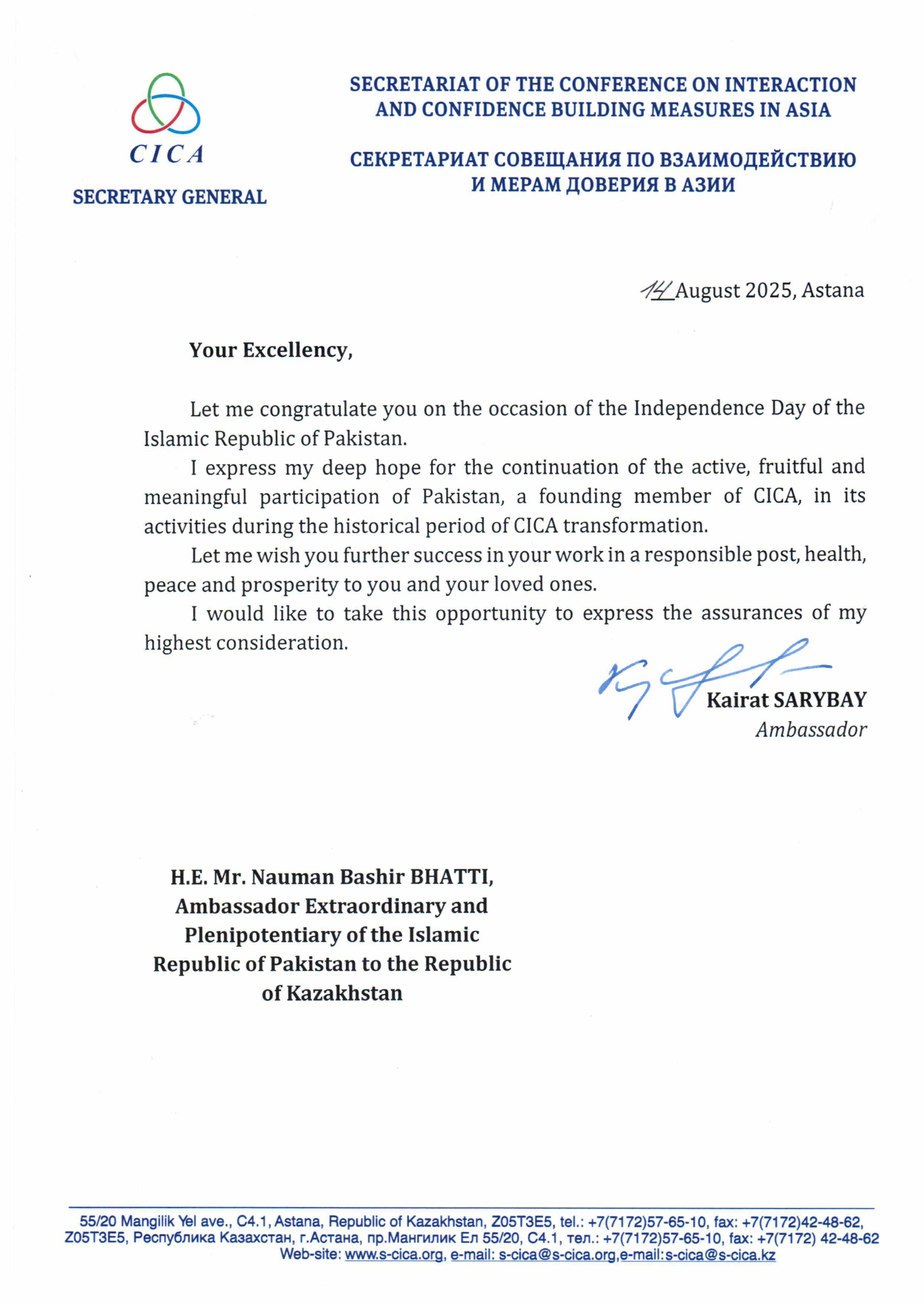 Statements and Remarks of CICA Secretary General Ambassador Kairat Sarybay