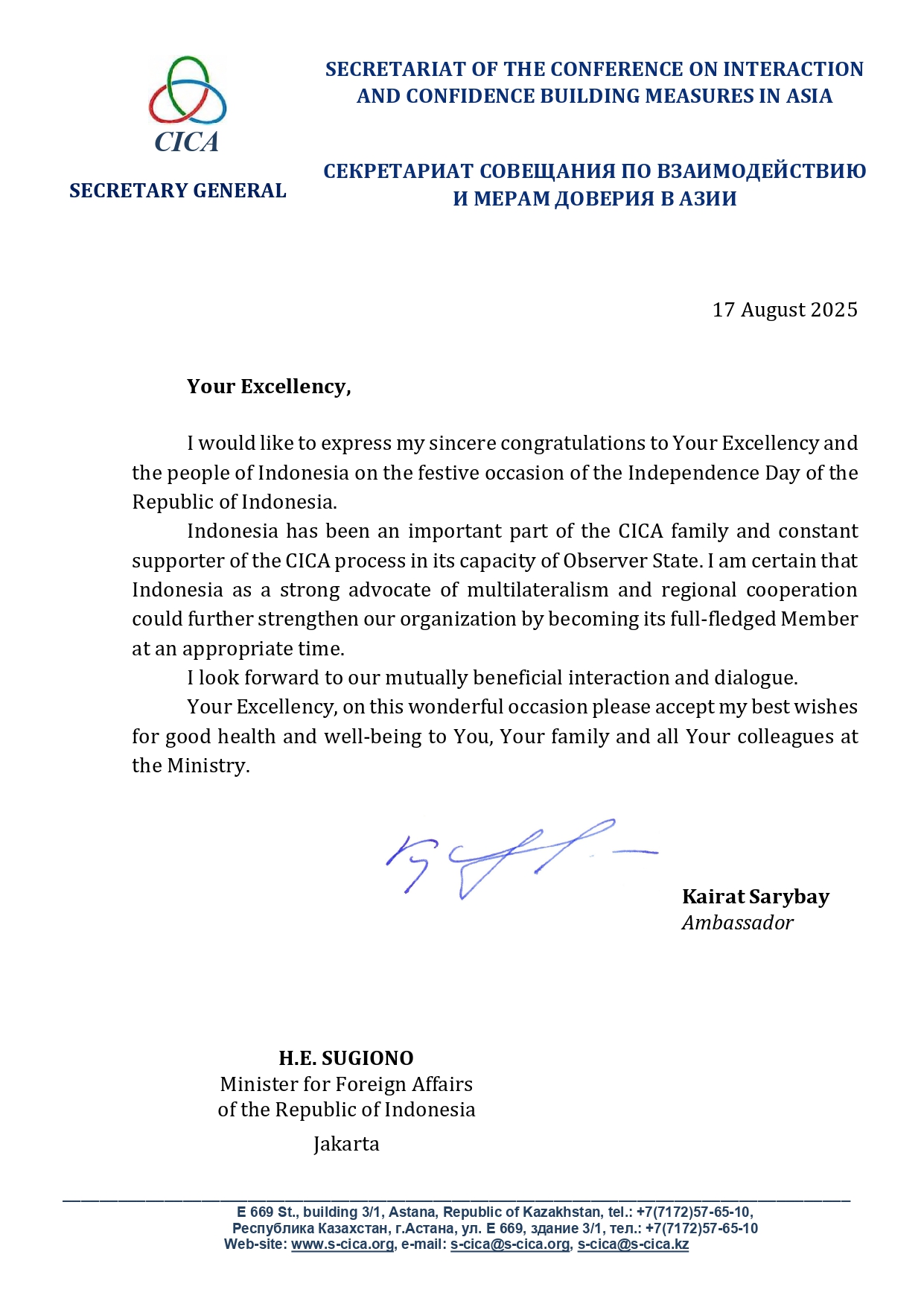 Main news: Inauguration of the new CICA Headquarters in Astana – More details →