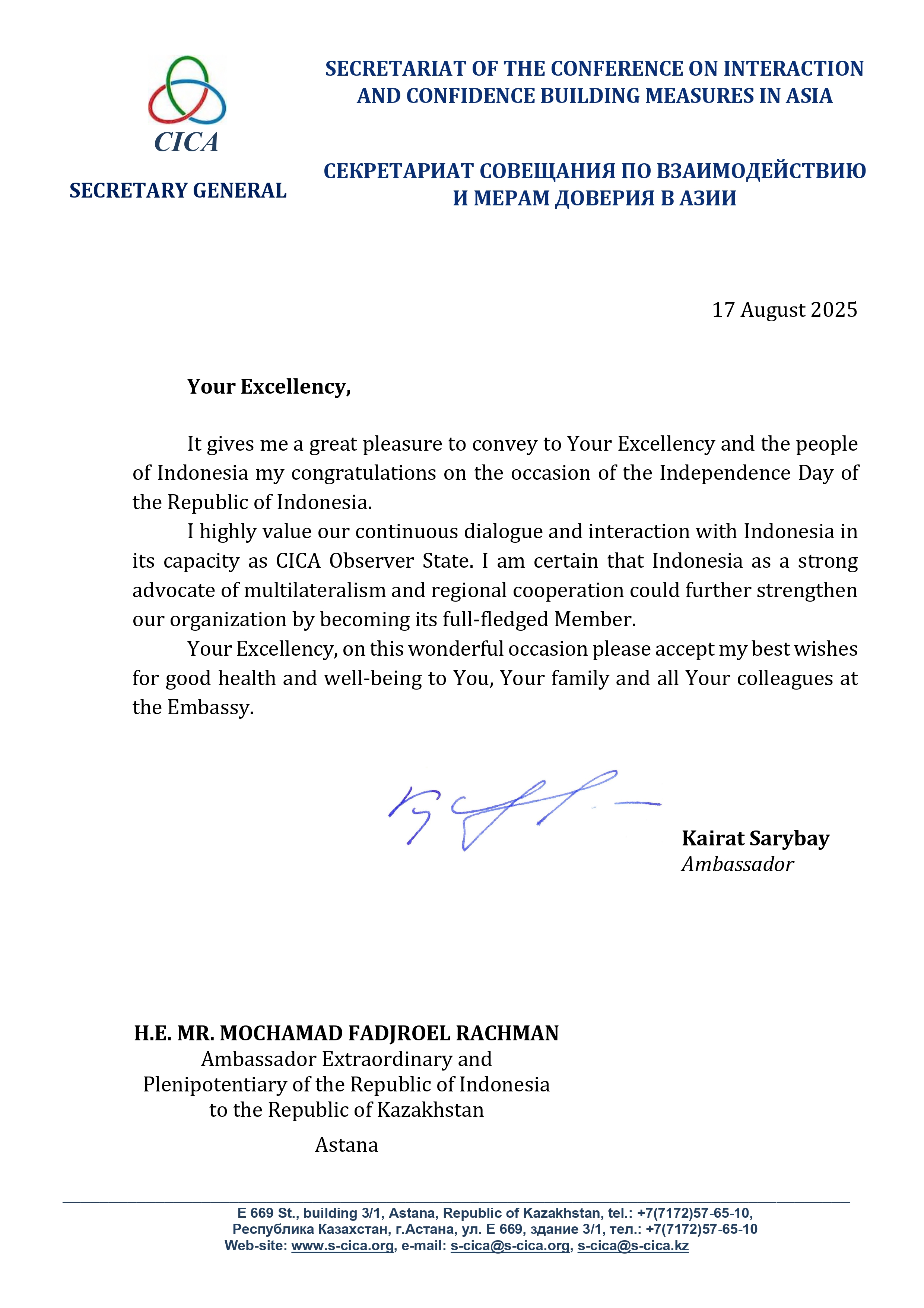 Statements and Remarks of CICA Secretary General Ambassador Kairat Sarybay