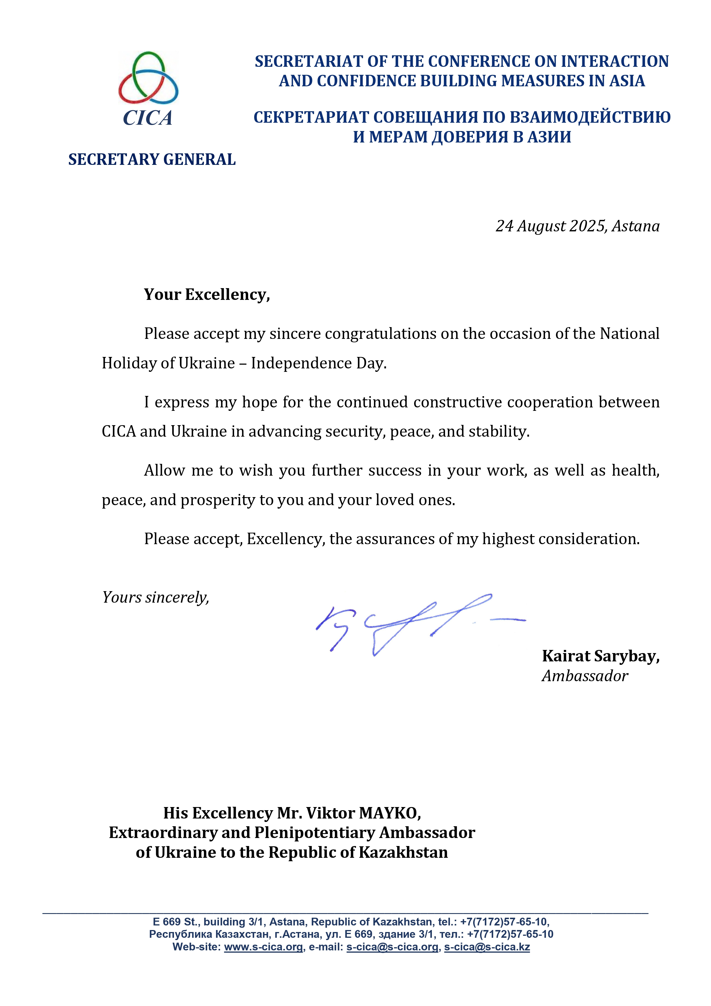 Main news: Inauguration of the new CICA Headquarters in Astana – More details →