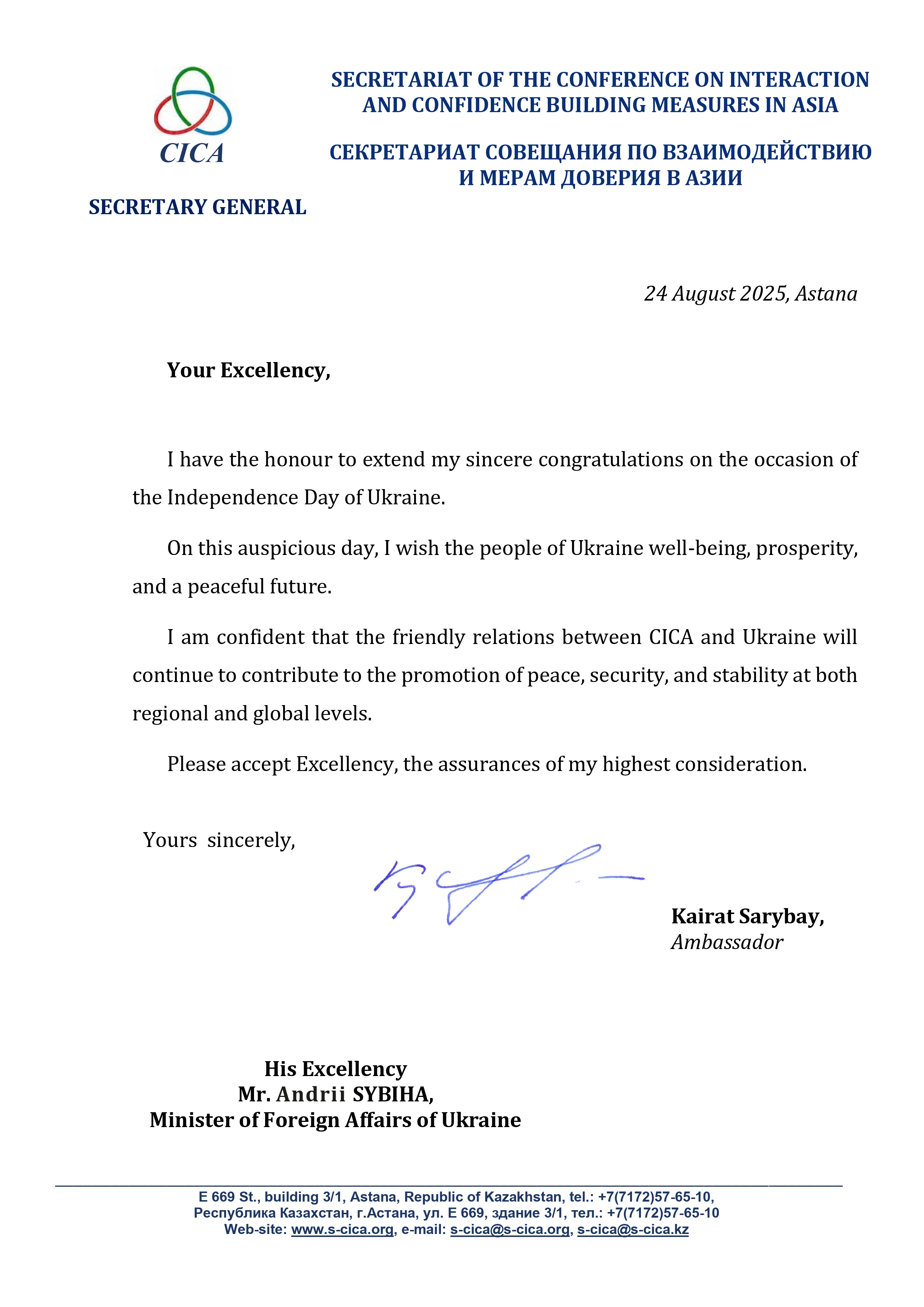 Statements and Remarks of CICA Secretary General Ambassador Kairat Sarybay