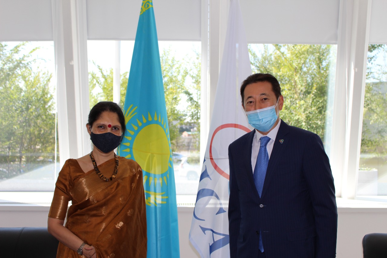 India’s important role in the CICA process and substantive and organizational aspects of the upcoming CICA Ministerial Meeting were discussed during the courtesy meeting held by CICA Executive Director Ambassador Kairat Sarybay with H.E. Shubhdarshini Tripathi, Ambassador of India in Nur-Sultan, on September 2, 2021.