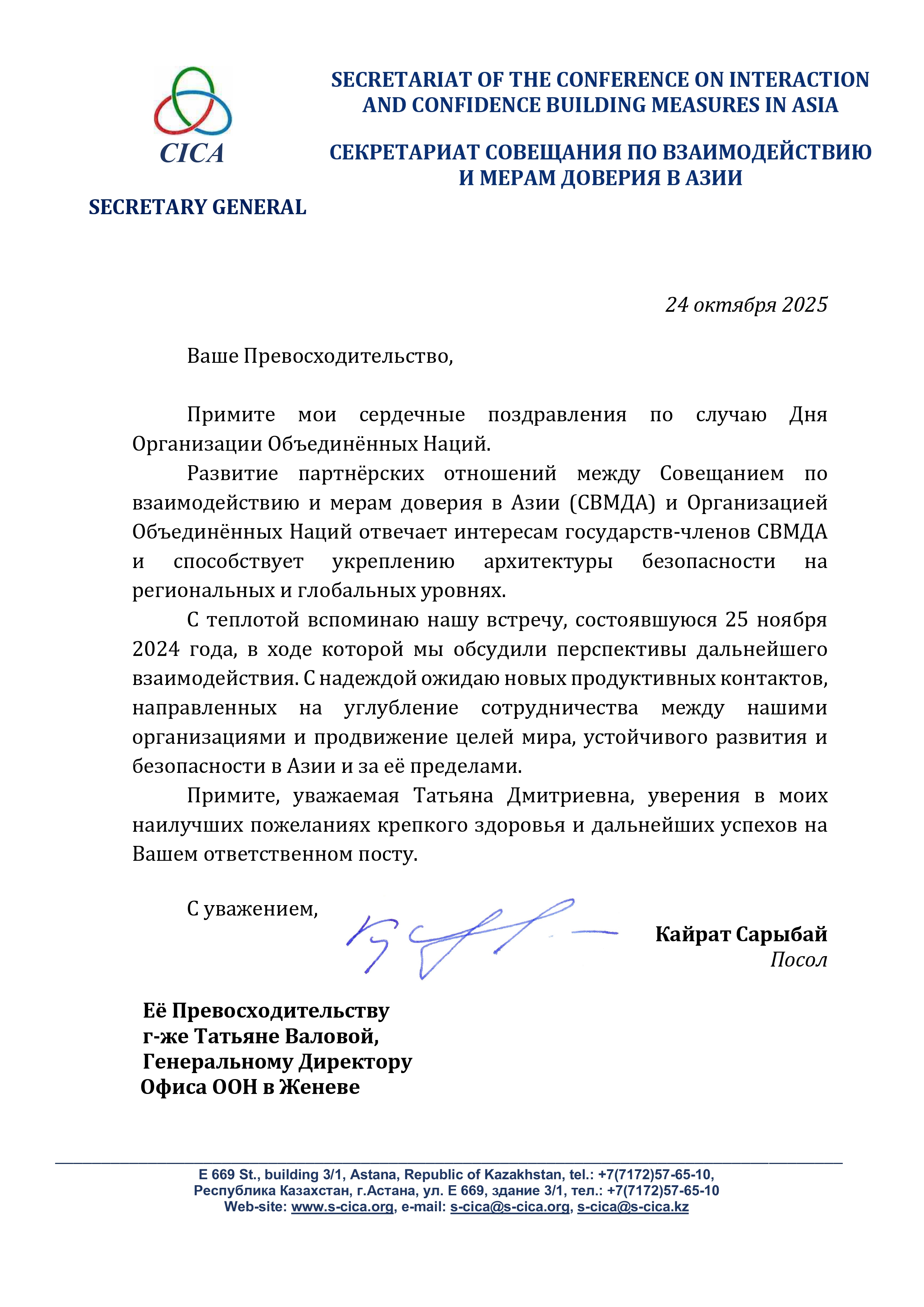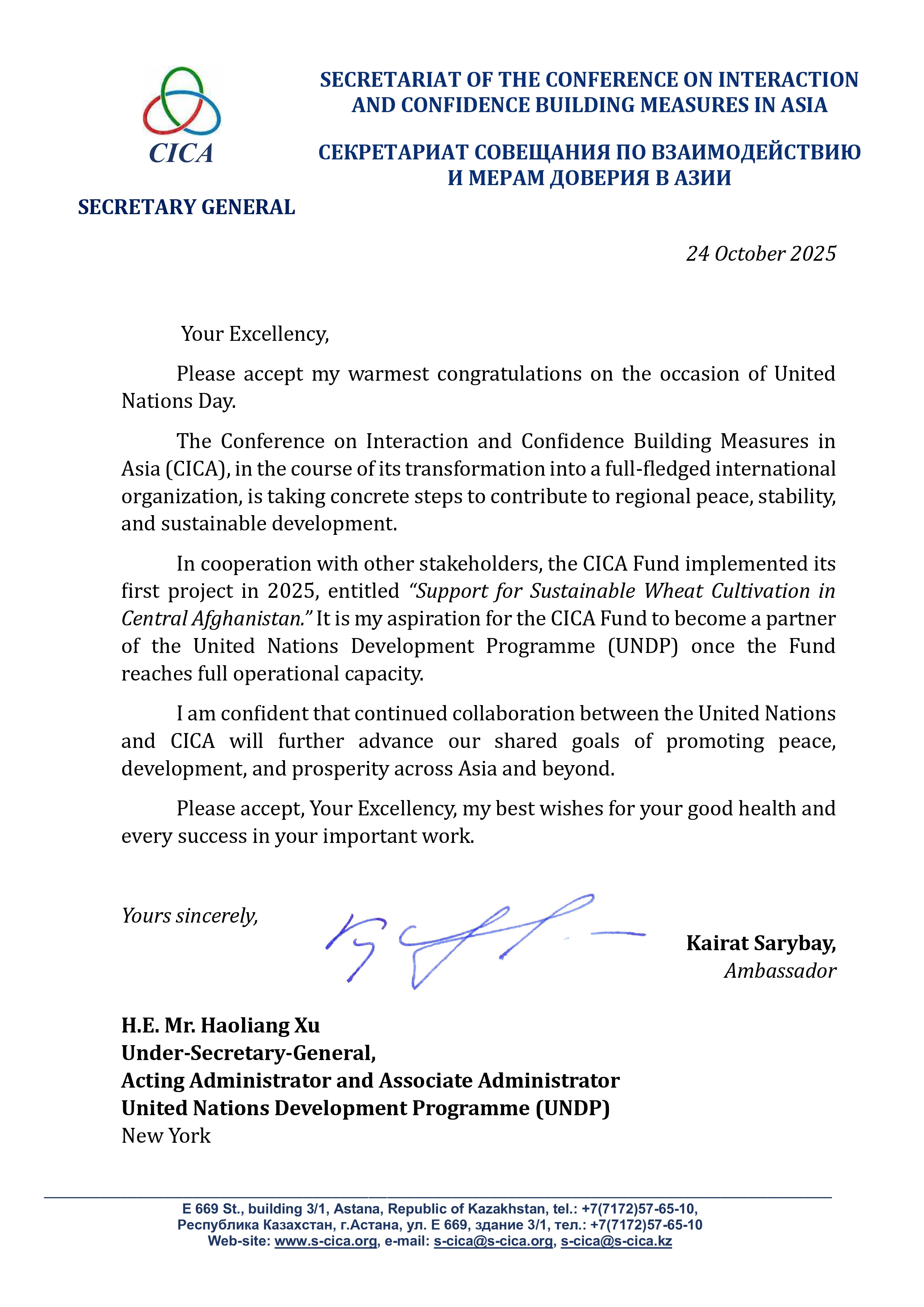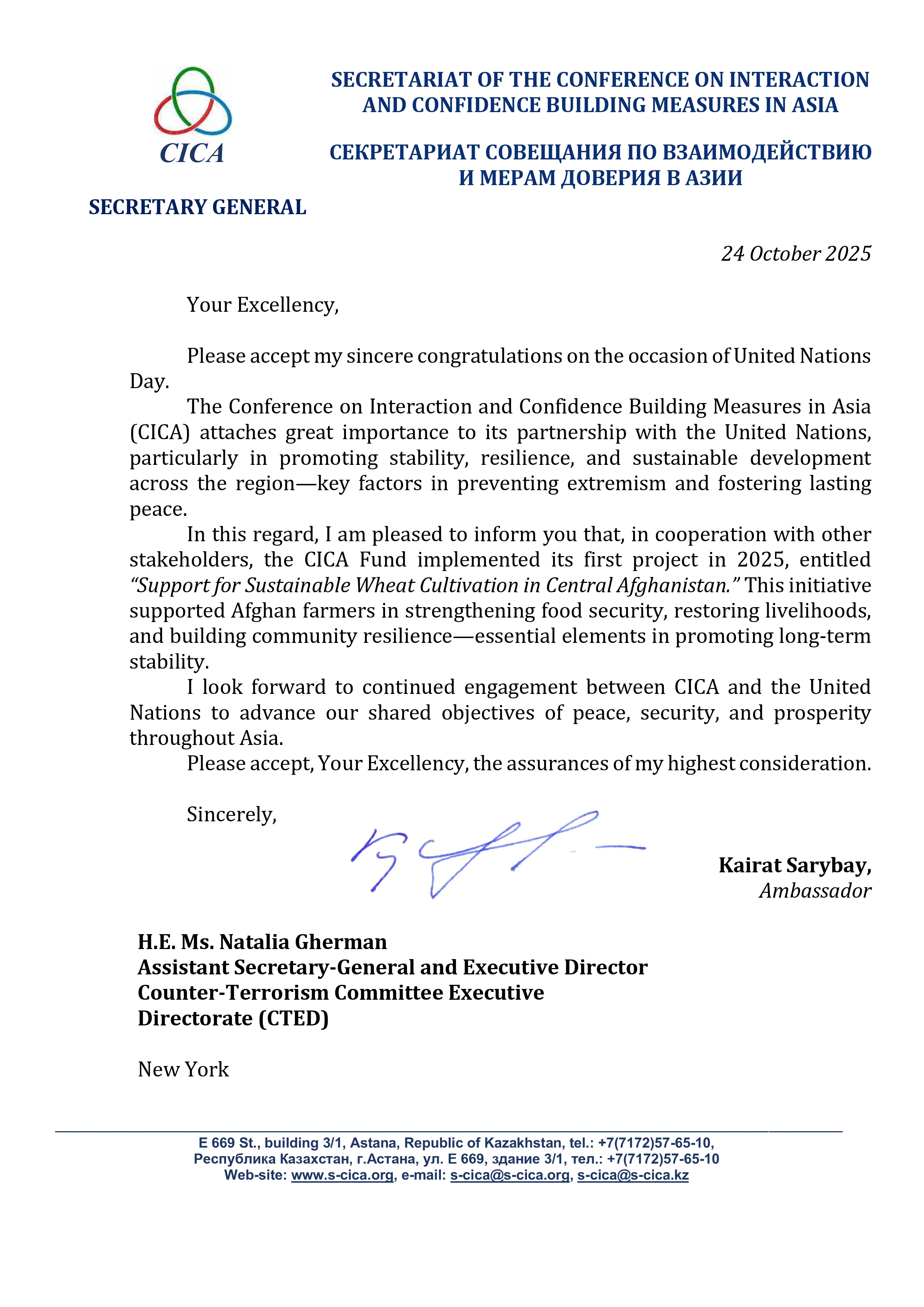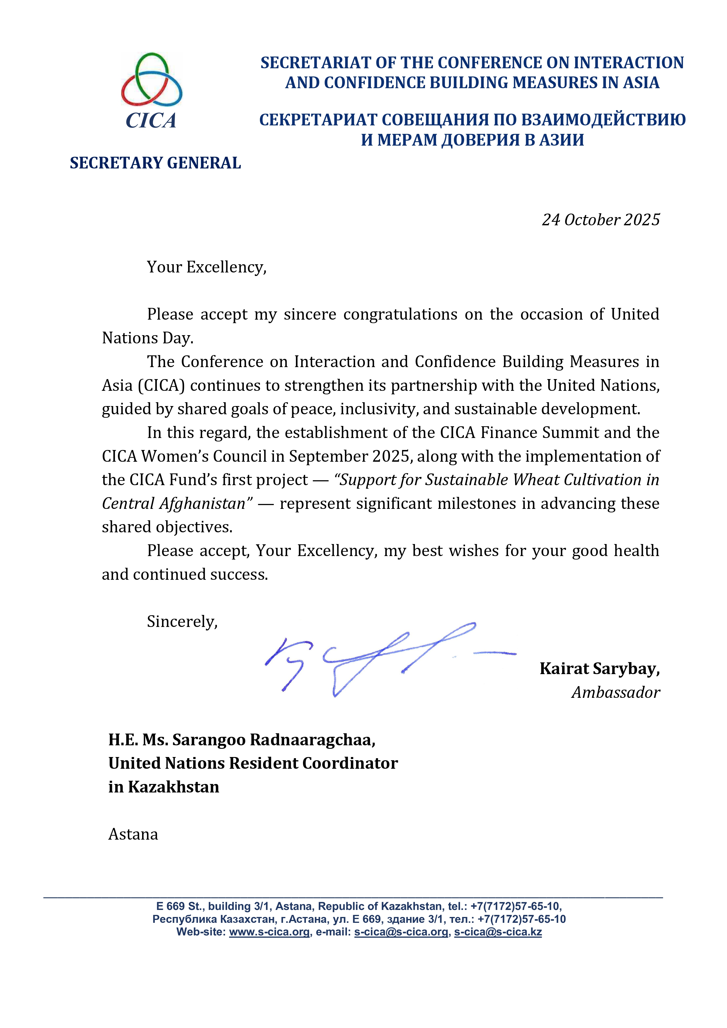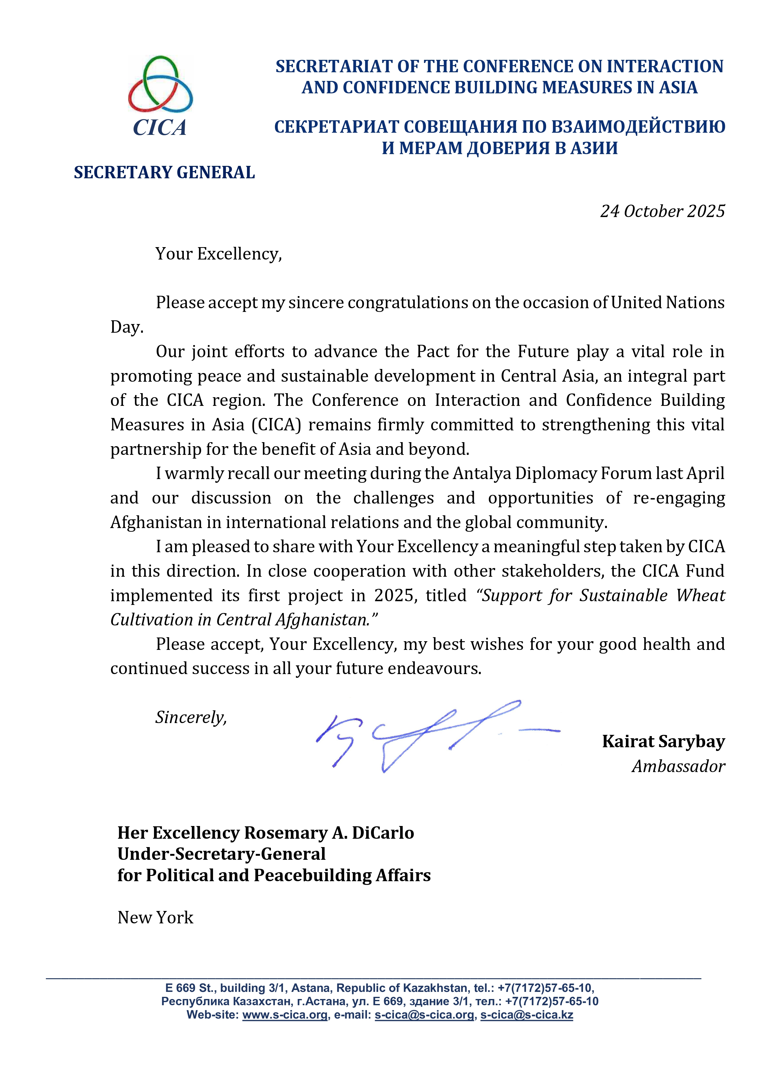 Statements and Remarks of CICA Secretary General Ambassador Kairat Sarybay