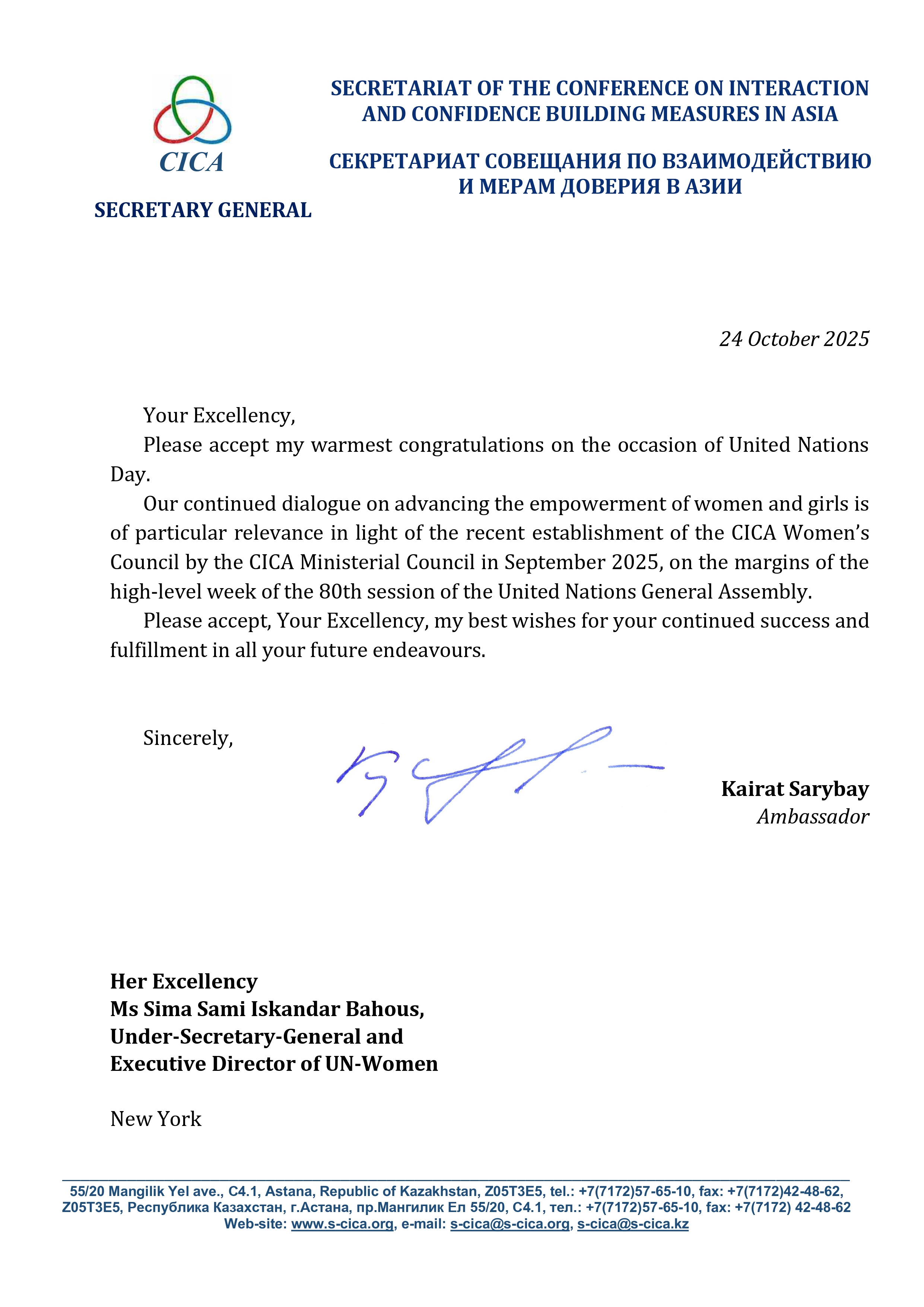 Main news: Inauguration of the new CICA Headquarters in Astana – More details →