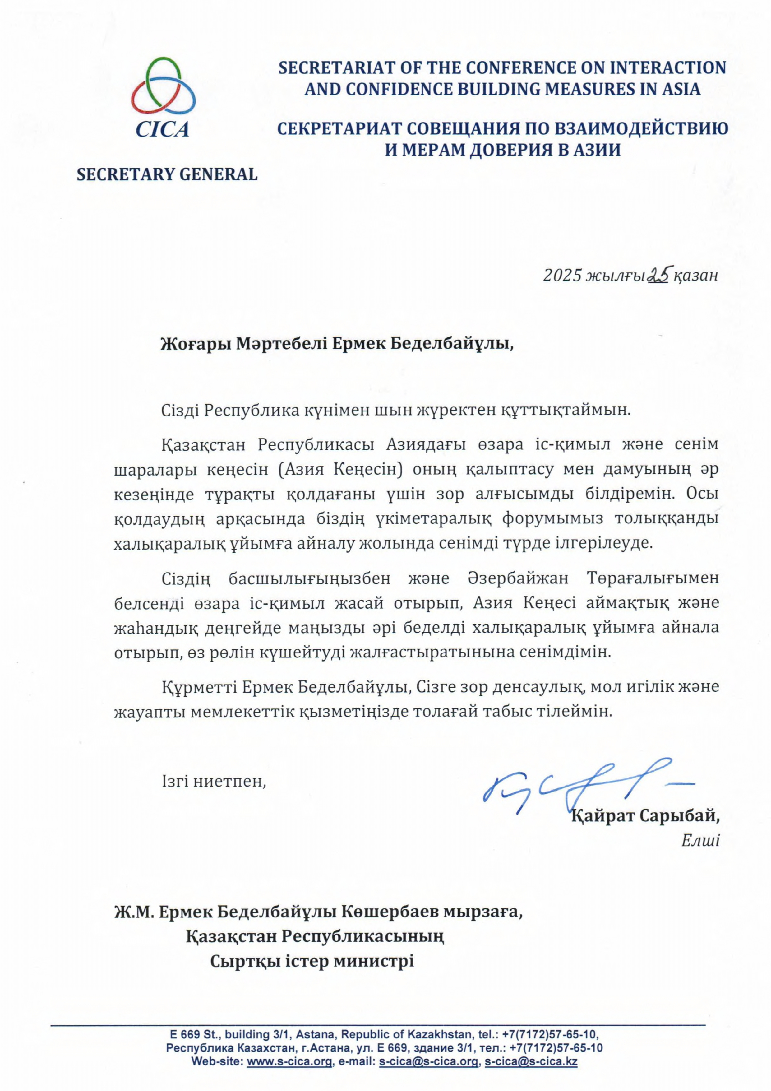 Statements and Remarks of CICA Secretary General Ambassador Kairat Sarybay